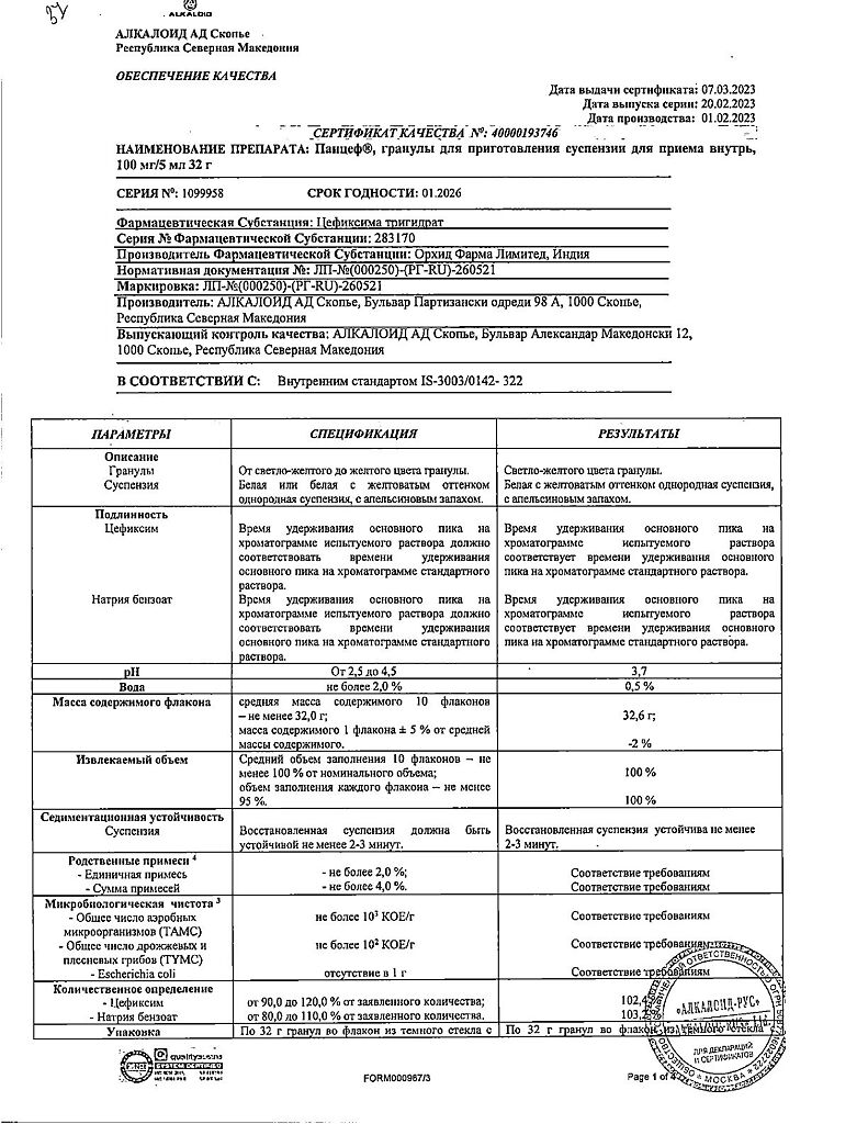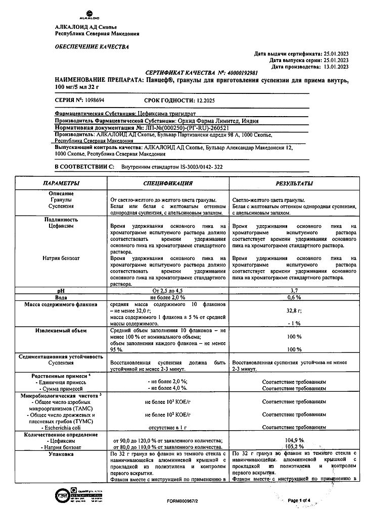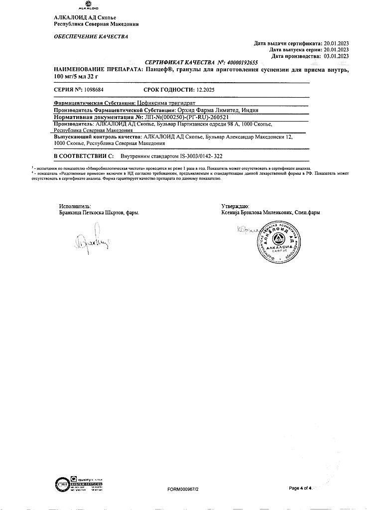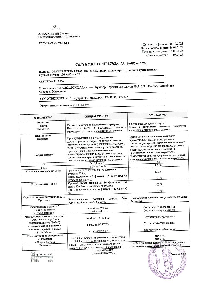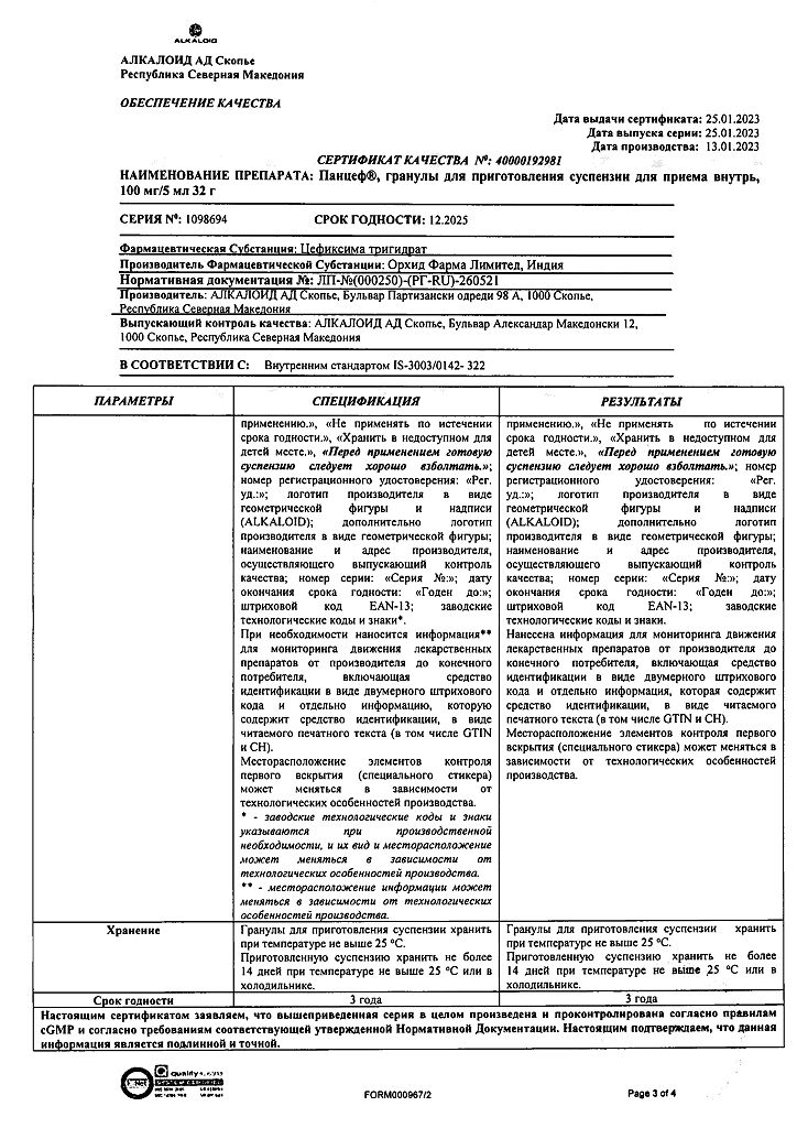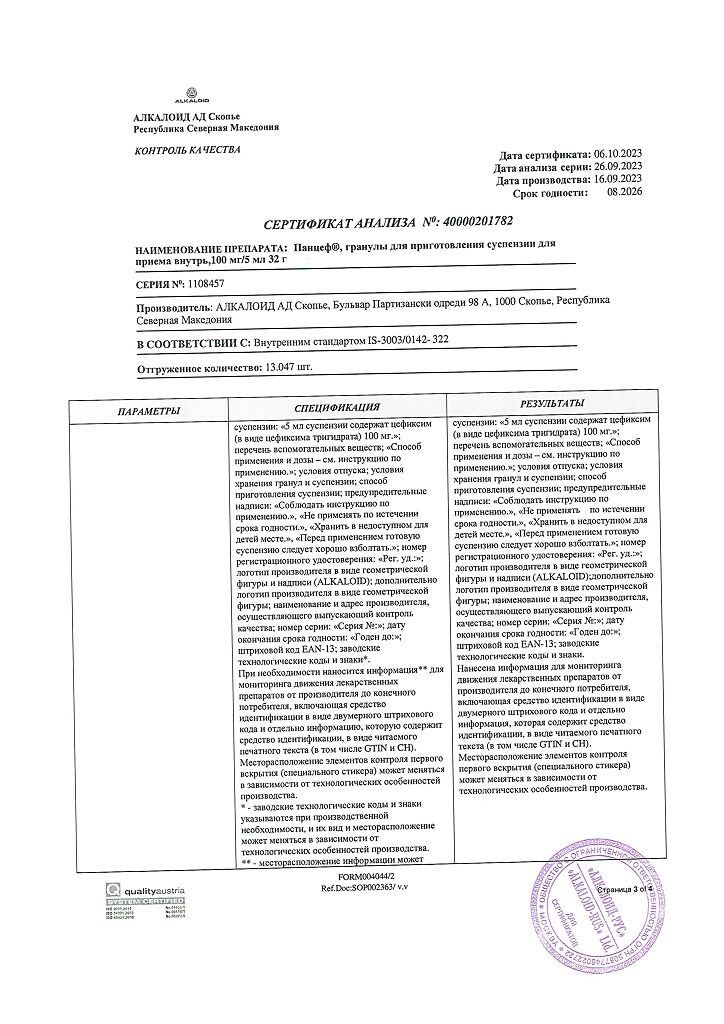 Пациенты, имевшие в анамнезе аллергические реакции на пенициллины, могут иметь повышенную чувствительность к цефалоспориновым антибиотикам. В случае появления аллергической реакции необходимо прекратить применение препарата и при необходимости принять соответствующие меры.