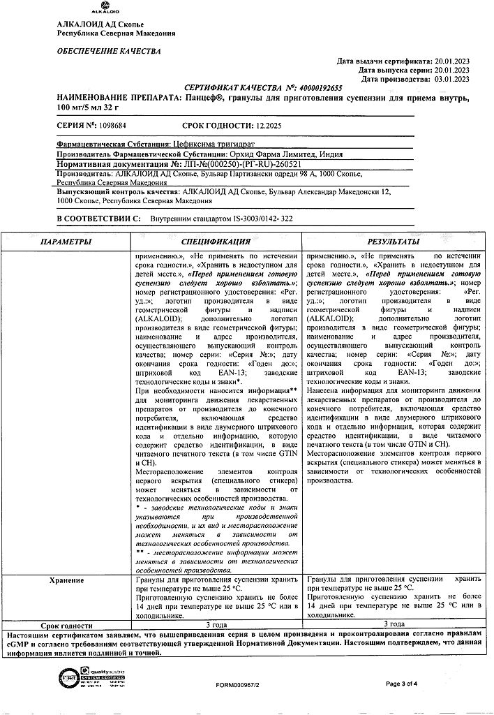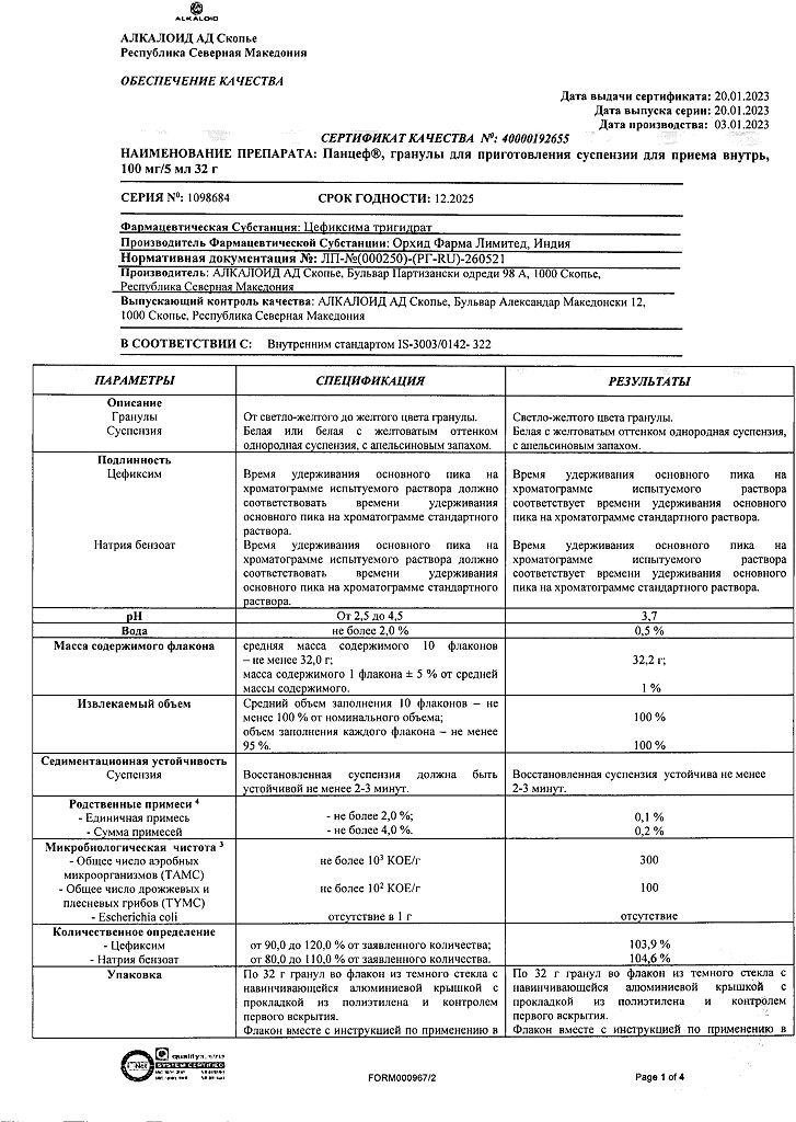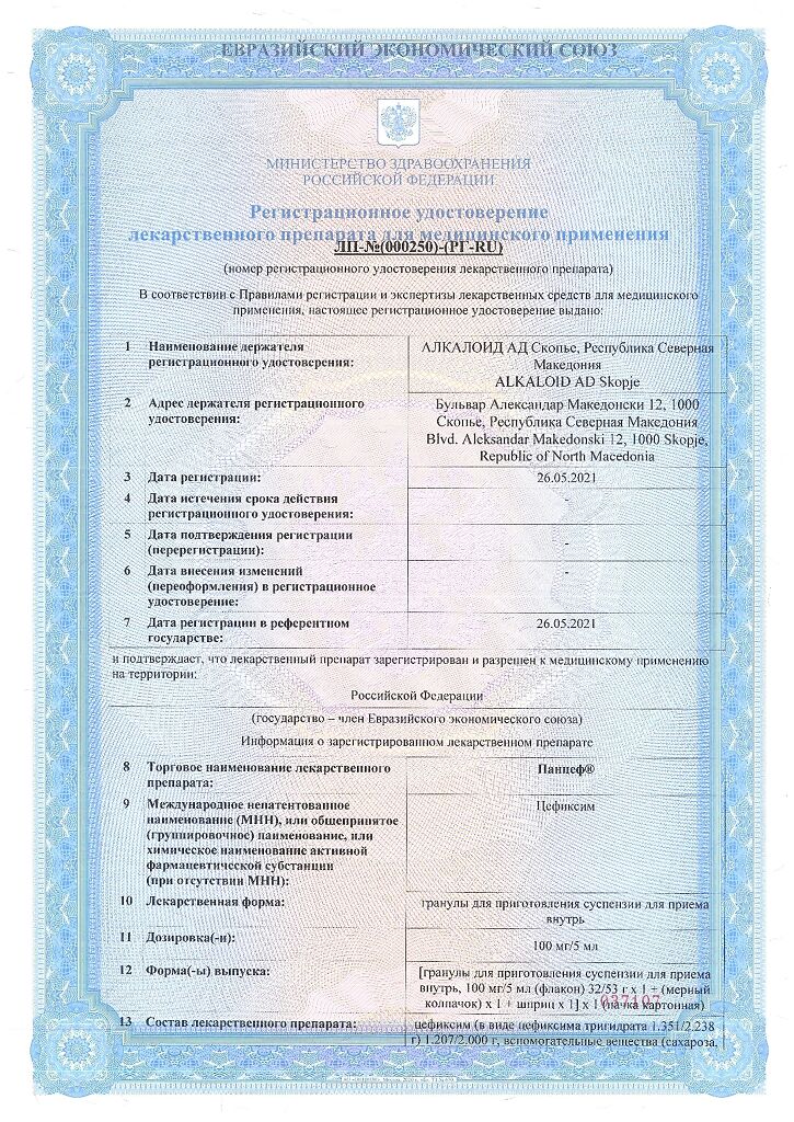 Всасывание. После приема внутрь всасывание цефиксима составляет 40–50% независимо от приема пищи; однако отмечено, что Cmax в сыворотке крови достигаются быстрее на 0,8 ч при приеме препарата вместе с пищей. При приеме препарата в форме таблеток в дозе 400 мг Cmax в плазме составляет 3,5 мкг/мл. Tmax — 2–6 ч.