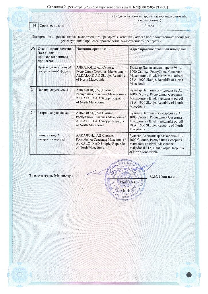 Производитель: Алкалоид АД Скопье, Республика Северная Македония