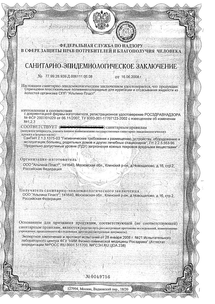 Документы Спринцовка БИ9 для ирригации 320 мл 1 шт