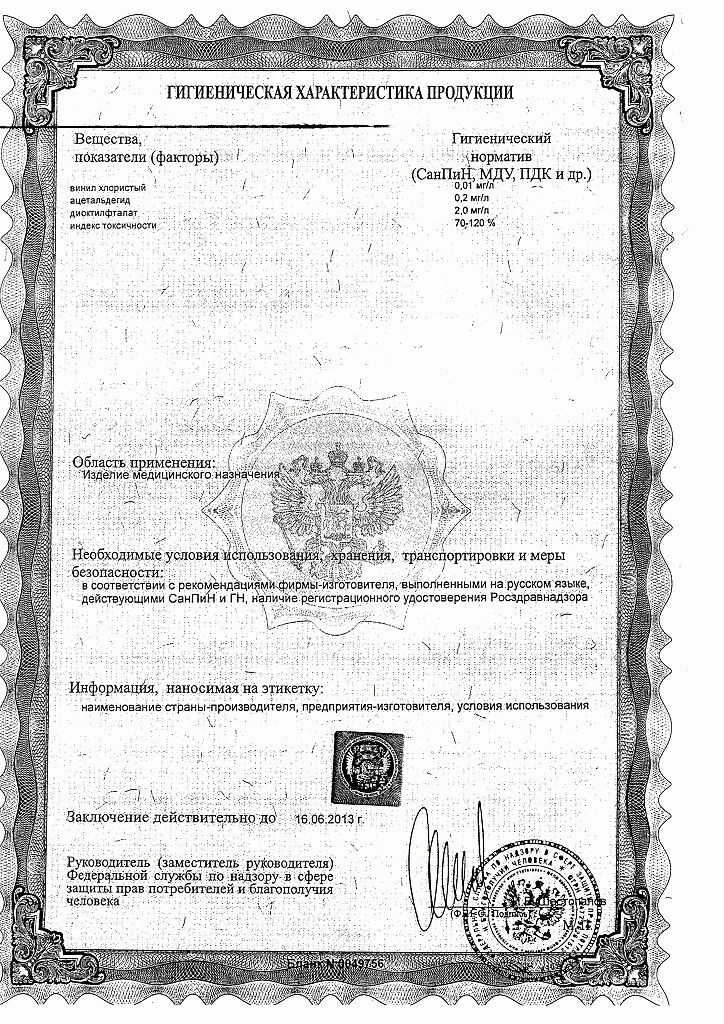 Баллон – поливинилхлорид, наконечник – полипропилен.