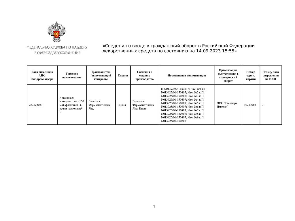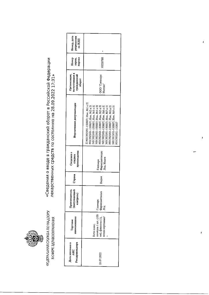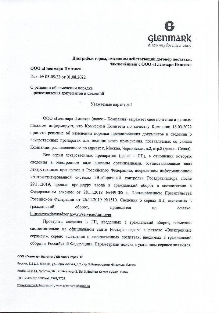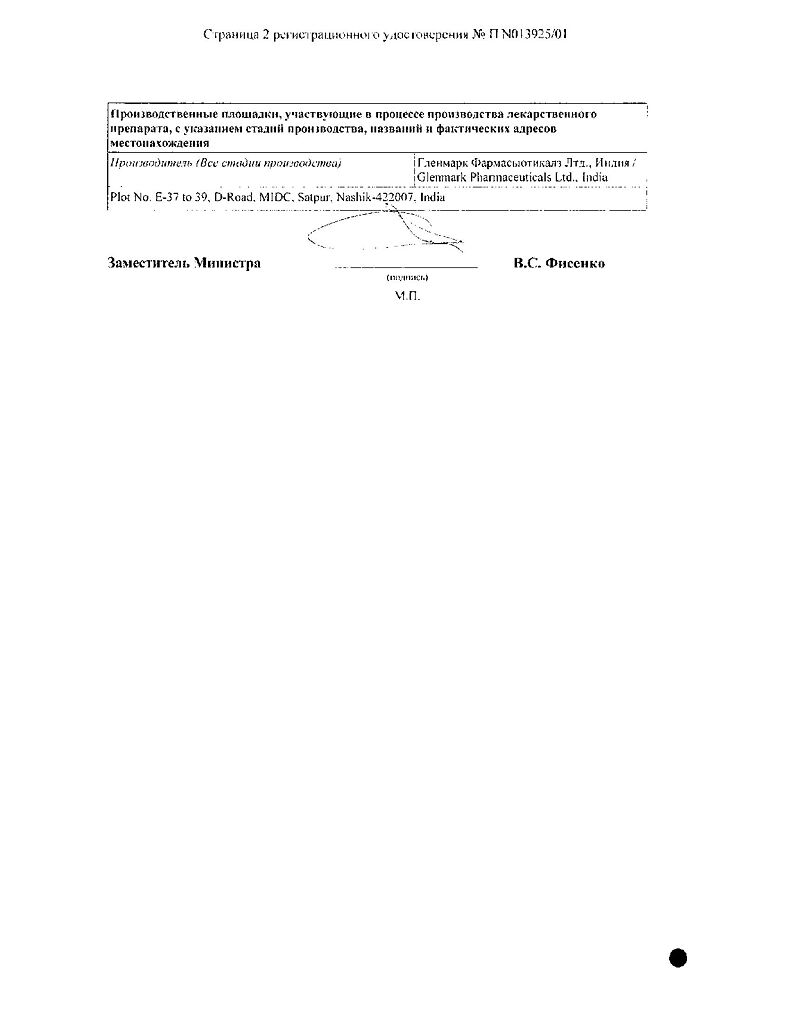 Производитель: Гленмарк Фармасьютикалз Лтд, Индия