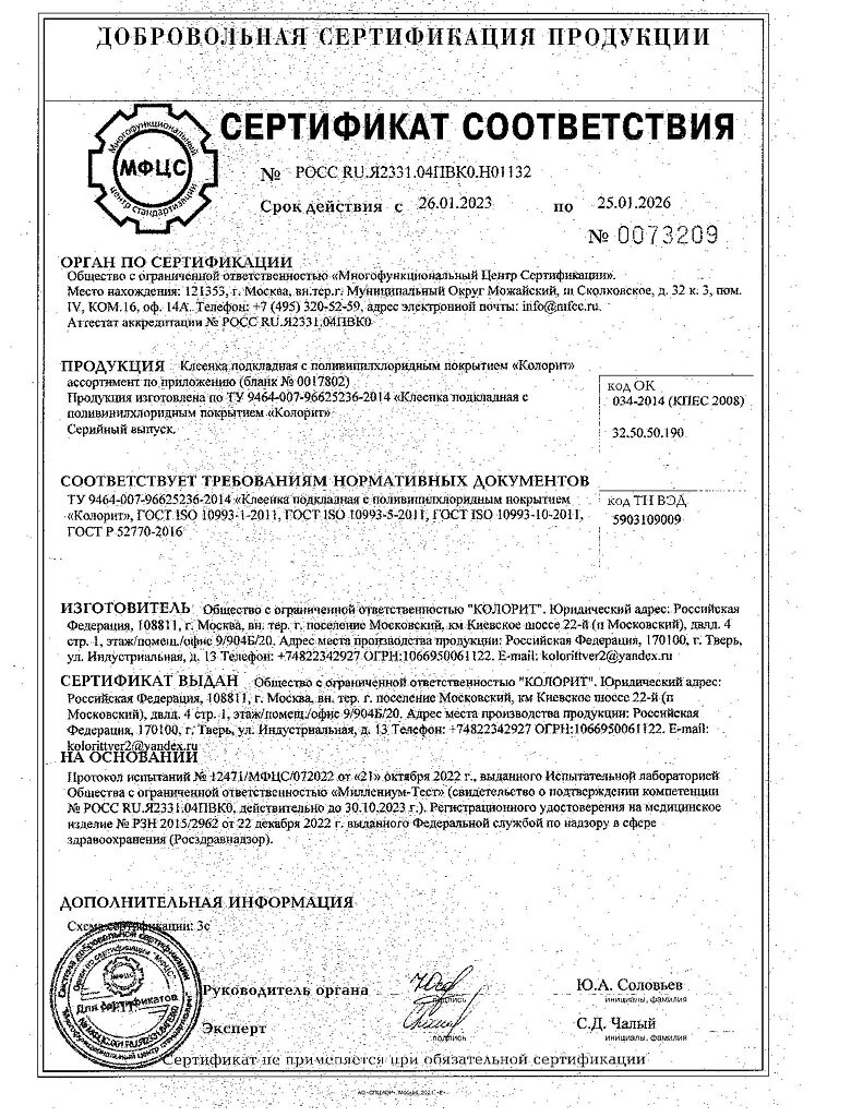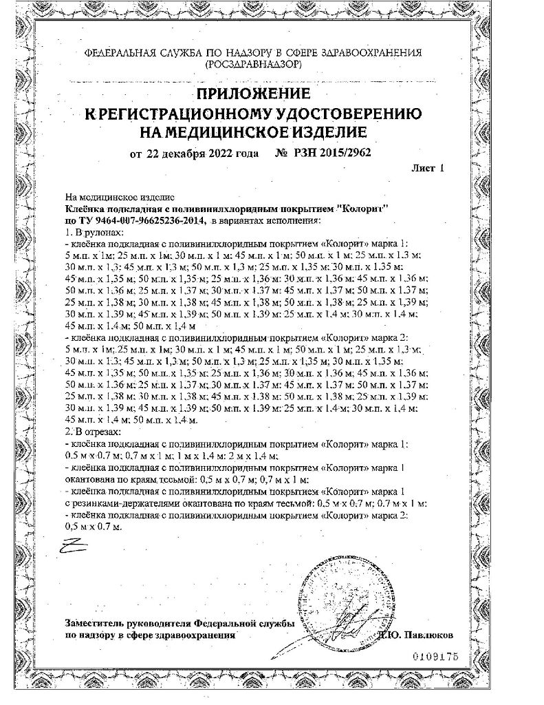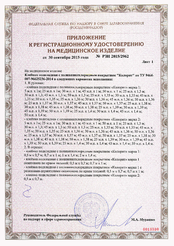 Клеенка производится по специально отработанной рецептуре, стойка к многократной дезинфекции, имеет длительный срок службы