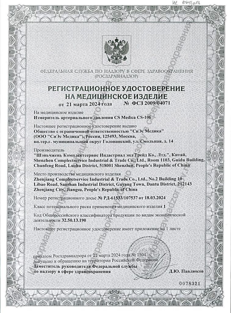 Производитель: СиЭс Медика, Китайская Народная Республика