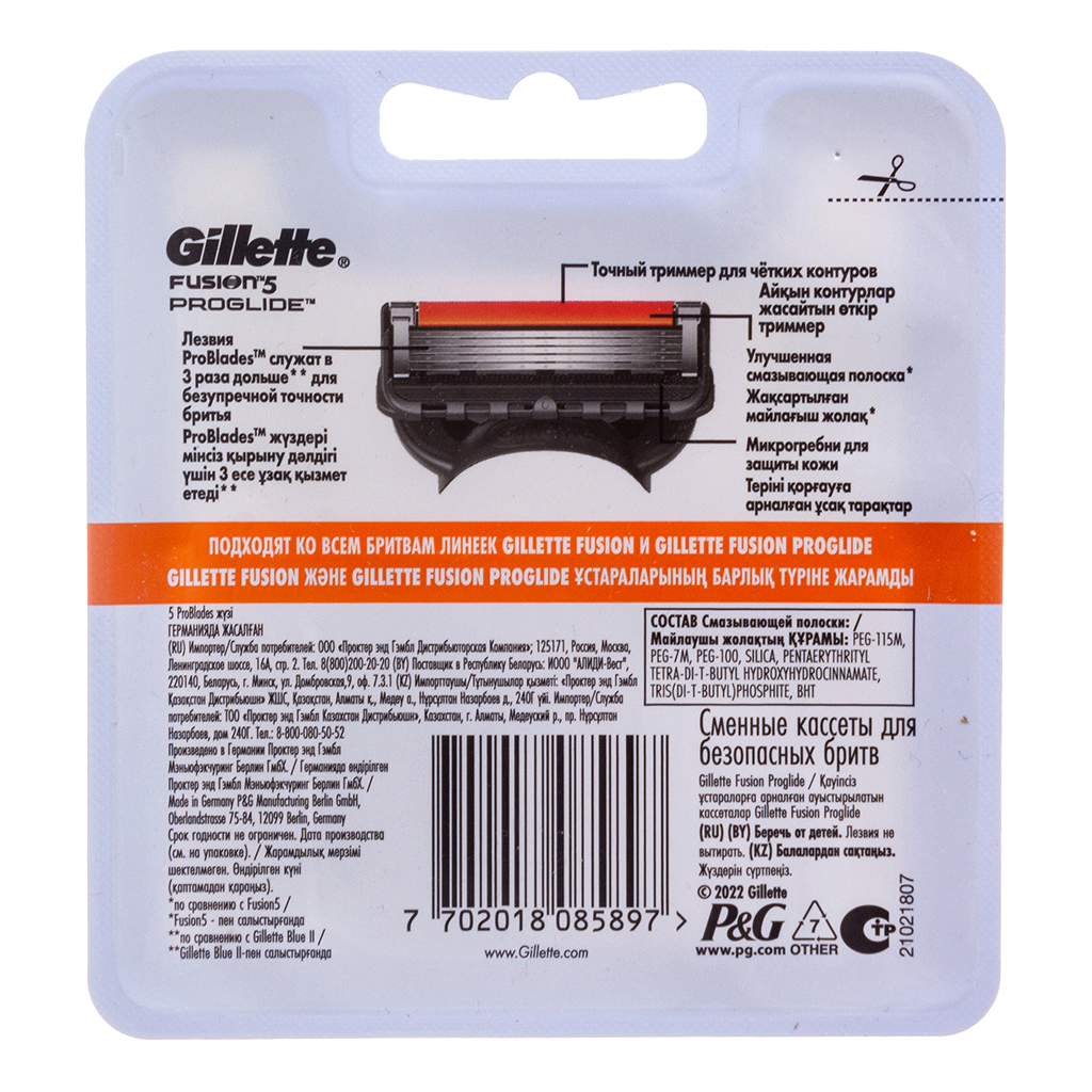 Комплектация: сменные кассеты Gillette Fusion5 ProGlide  для бритвенного станка для мужчин, в упаковке 2 шт.