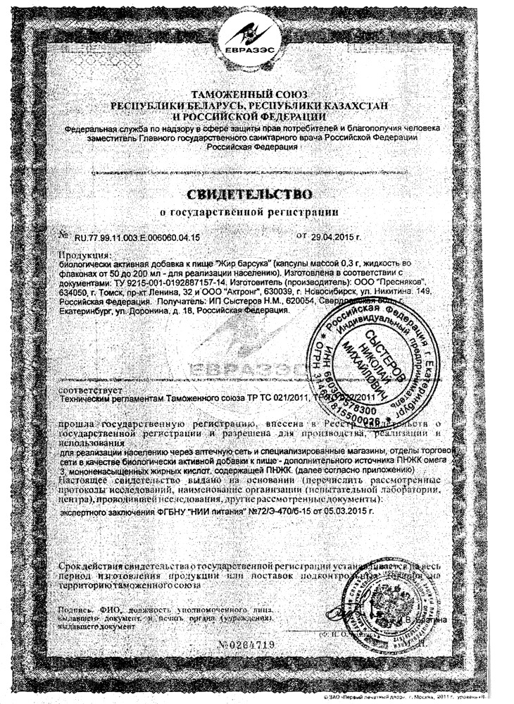Бренд: Барсучий жир