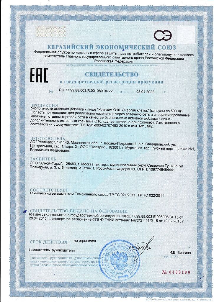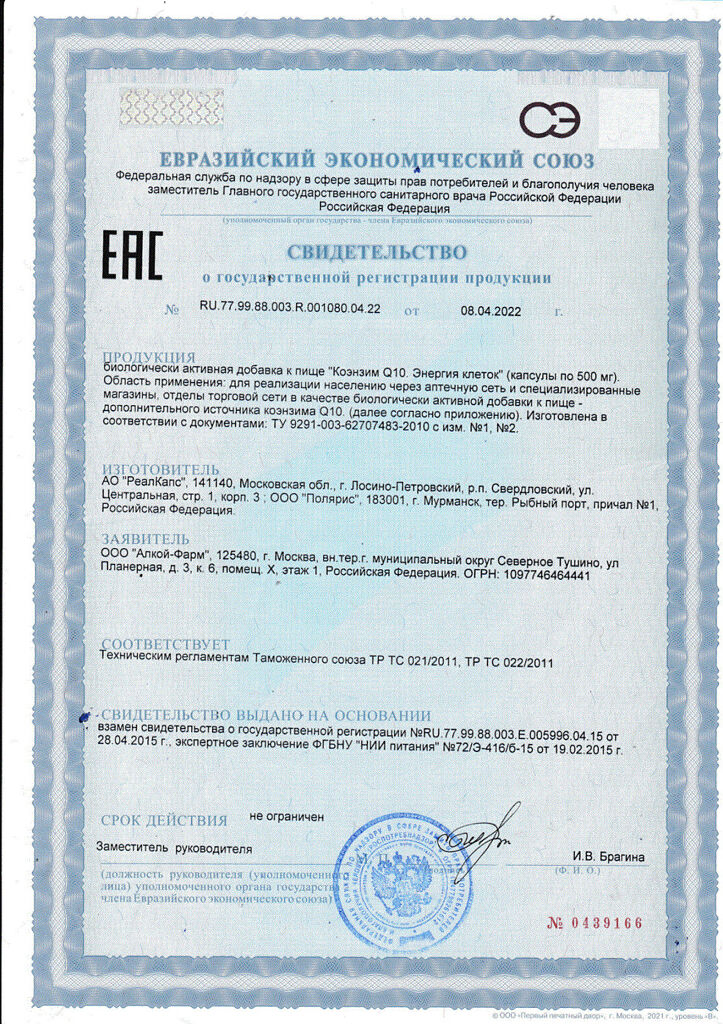 Документы Коэнзим Q10 Энергия клеток капсулы по 500 мг 40 шт