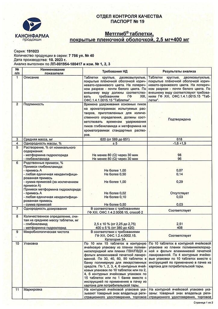 Фиксированная комбинация двух пероральных гипогликемических средств различных фармакологических групп: метформина и глибенкламида.
