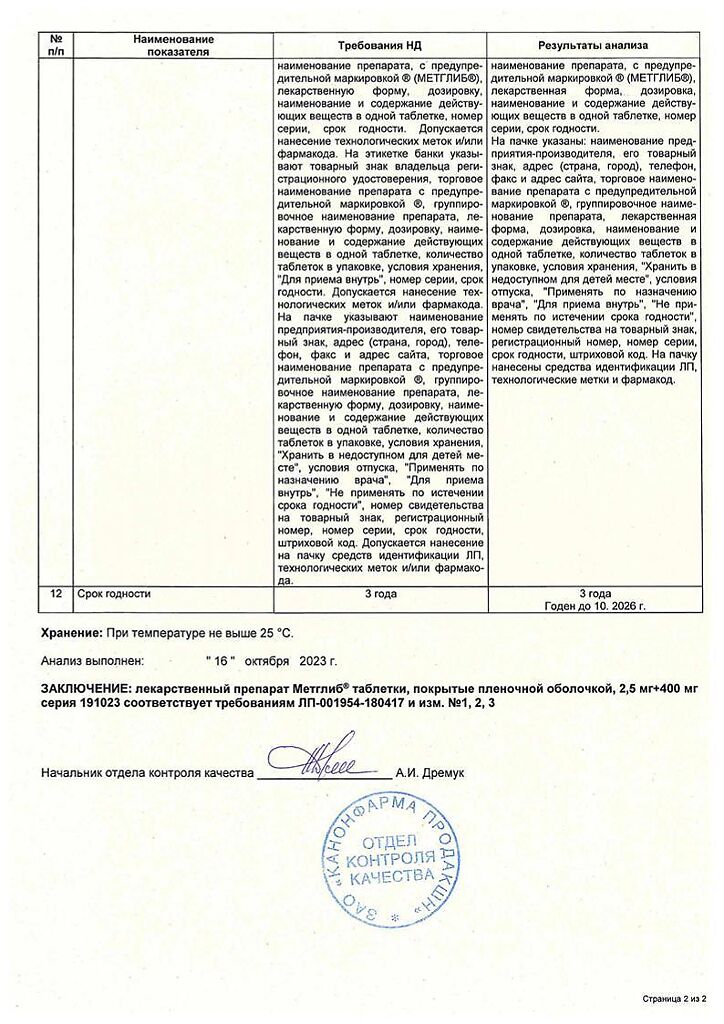 Максимальная суточная доза препарата Метглиб® составляет 6 таблеток, разделенных на 3 приема.