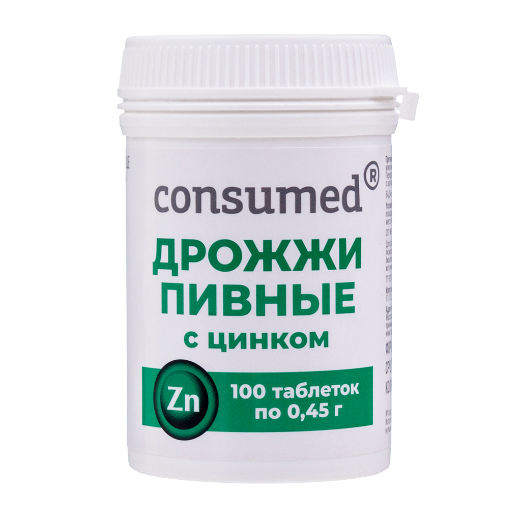 Пивные дрожжи, цинк, витамины (В1,В2, В3, В12, фолиевая кислота, ниацин, биотин), стеарат кальция, МКЦ.