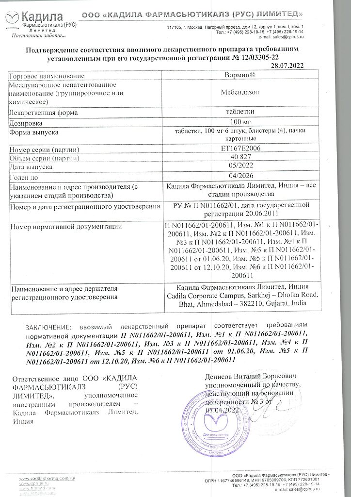 Производитель: Кадила Фармасьютикалз Лтд, Индия