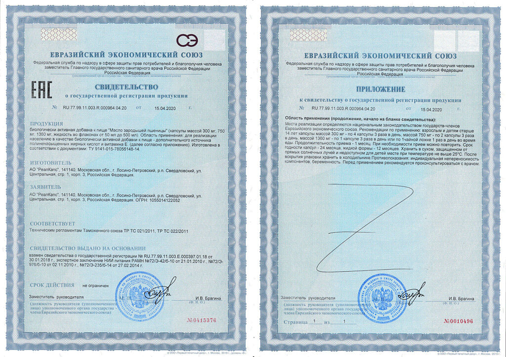 Масло зародышей пшеницы, альфа-токоферол, оболочка капсулы (желатин, глицерин (влагоудерживающий агент), вода деминерализованная).