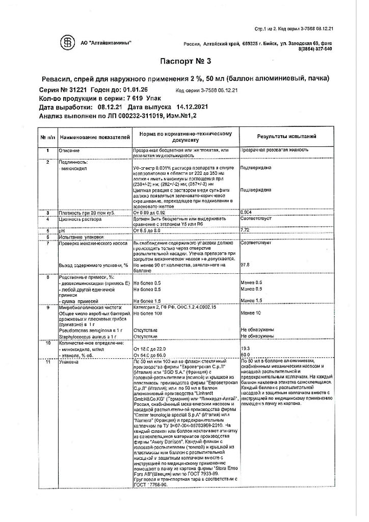 Документы Ревасил спрей для наружного применения 2 % 50 мл 1 шт