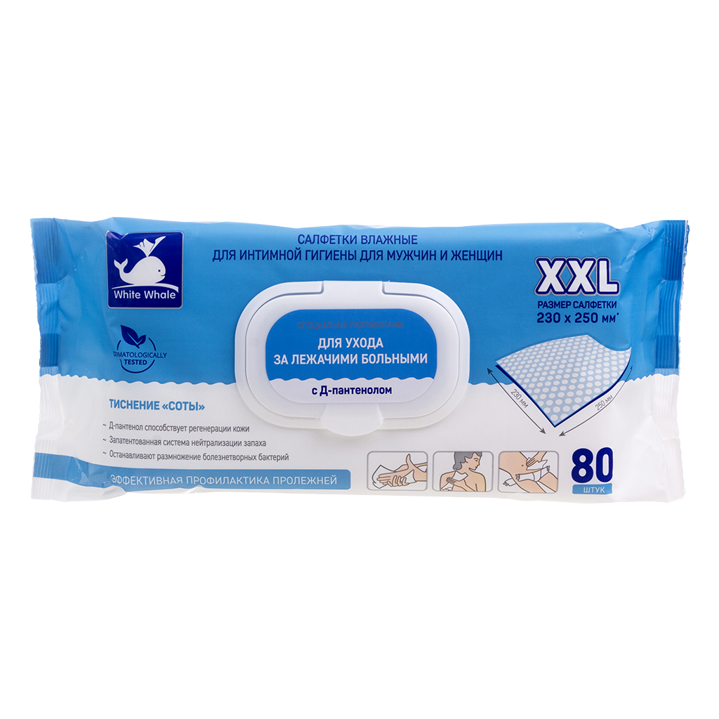Салфетки влажные White Whale для интимной гигиены лежачих больных с экстрактом Каланхоэ изготовленны для ухода за лежачими больными.