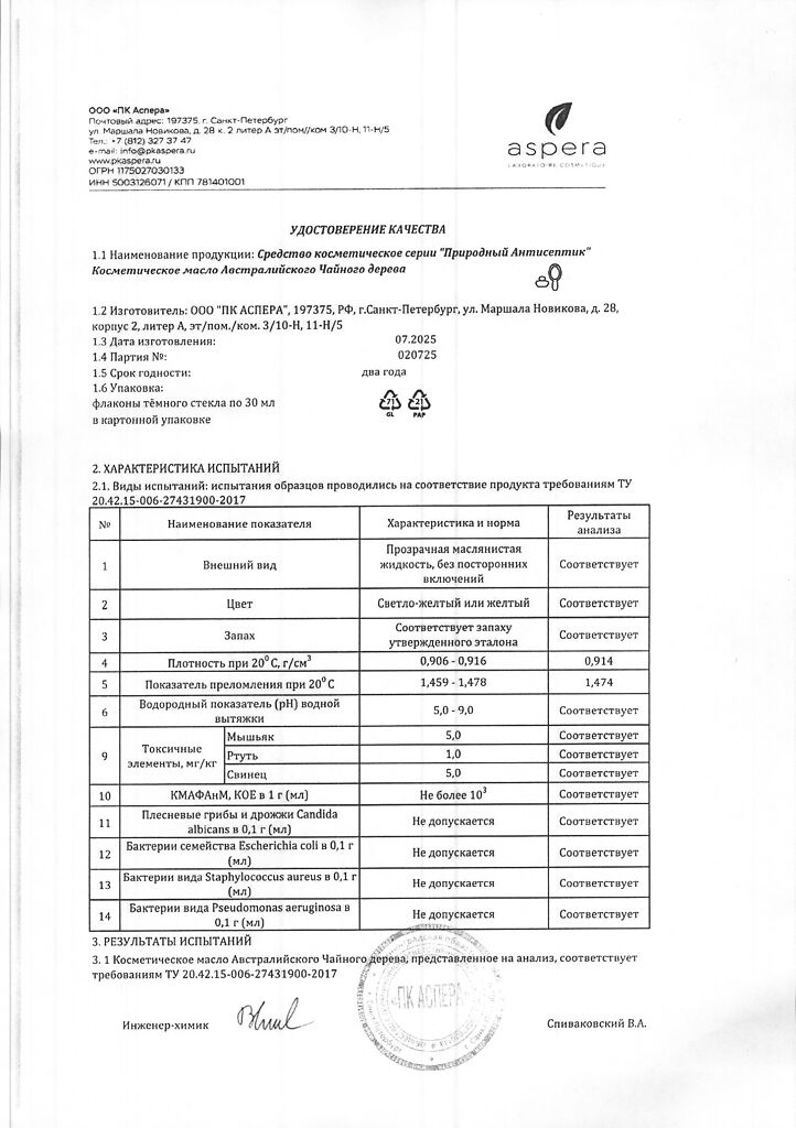 Документы Масло Природный антисептик Австралийское чайное дерево косметическое 30 мл 1 шт