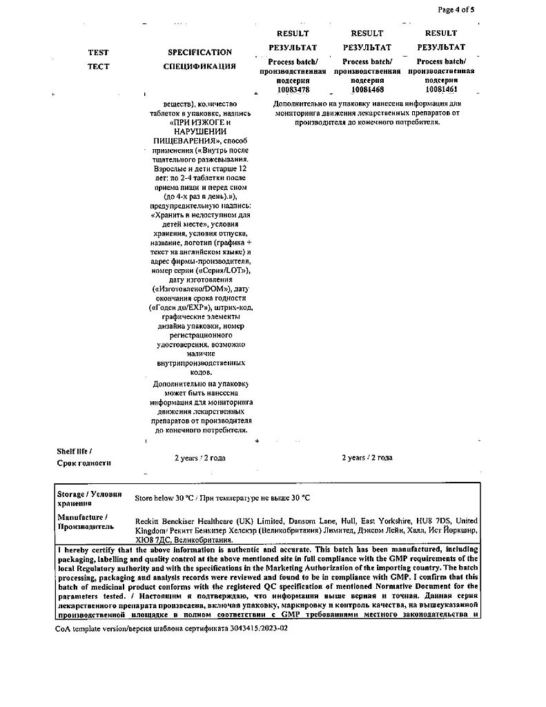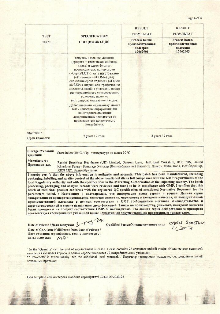 Производитель: Рекитт Бенкизер Хелскэр (Великобритания) Лимитед, Великобритания