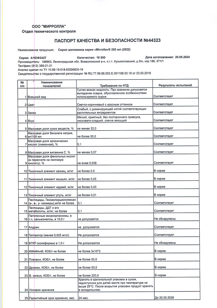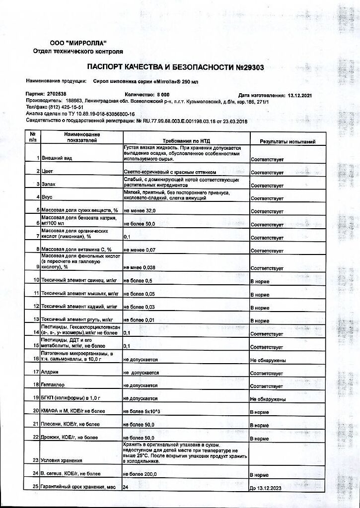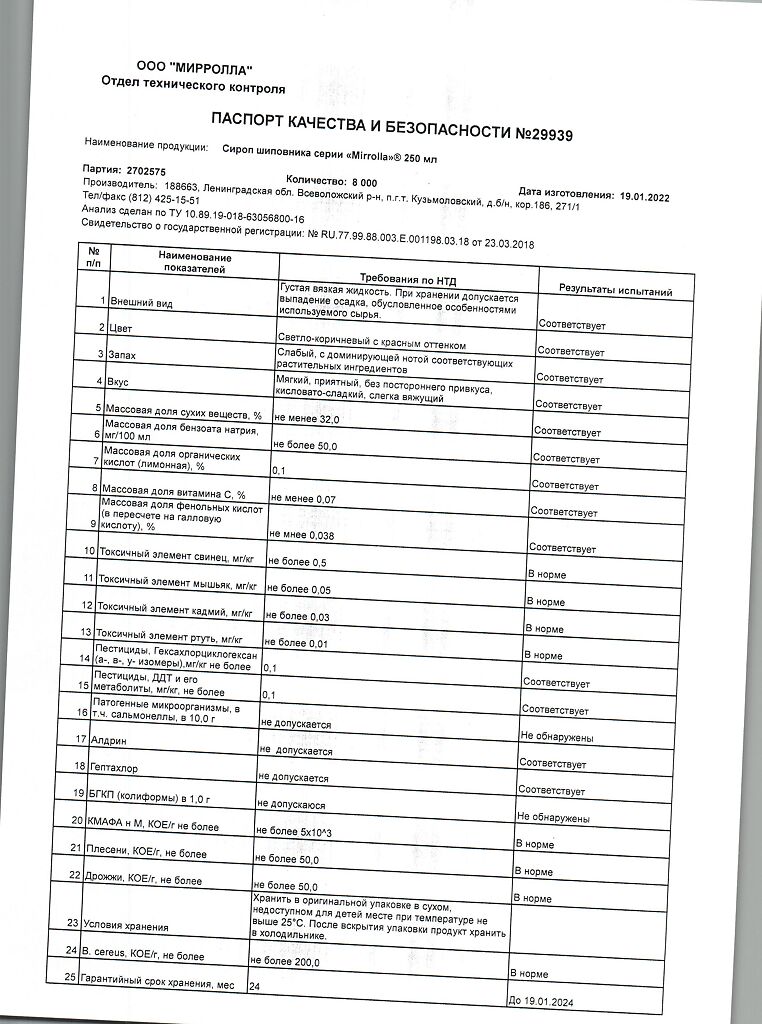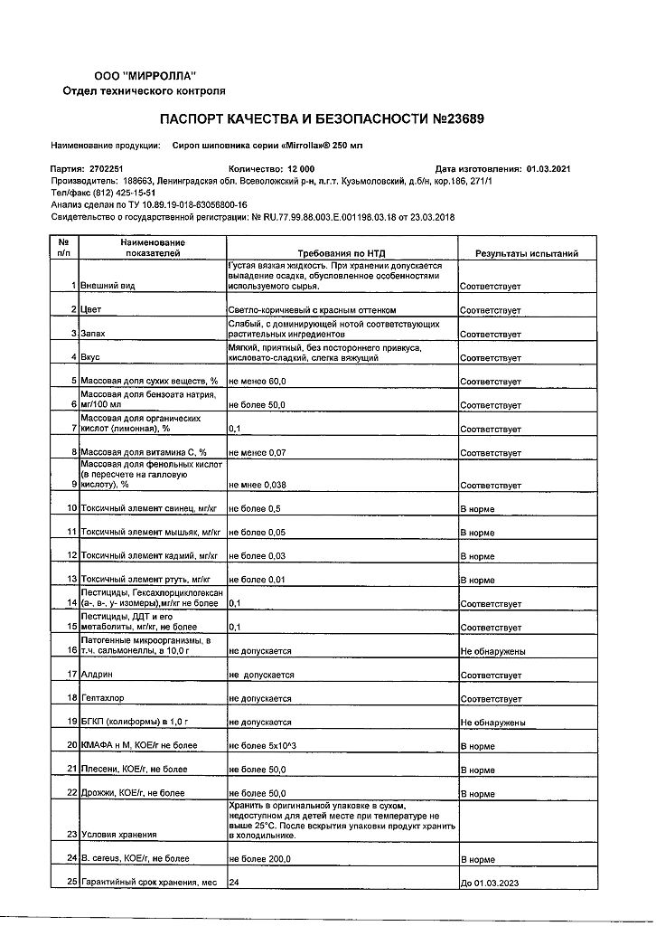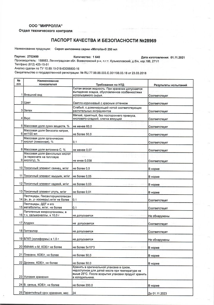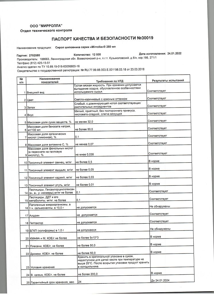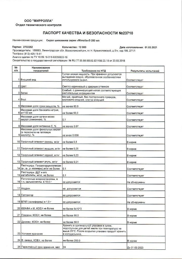 Производитель: Мирролла ООО, Россия