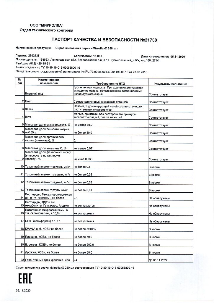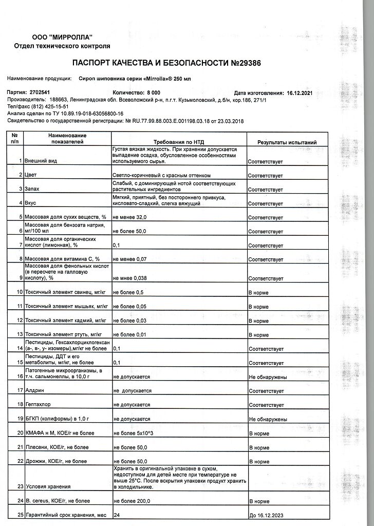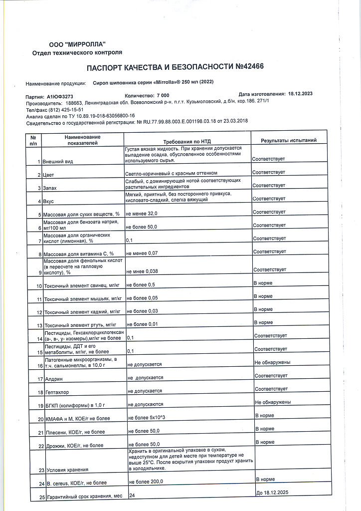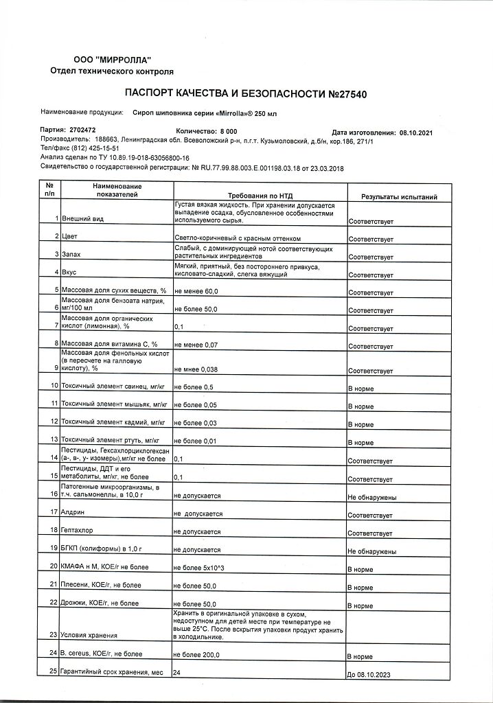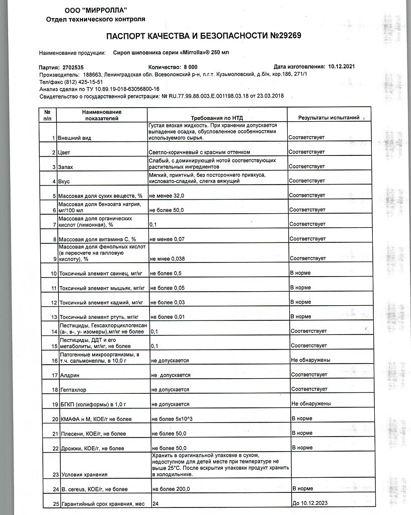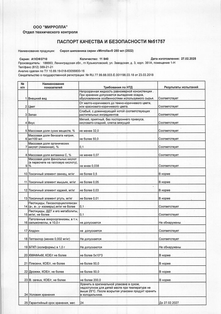 Производитель: Мирролла ООО, Россия