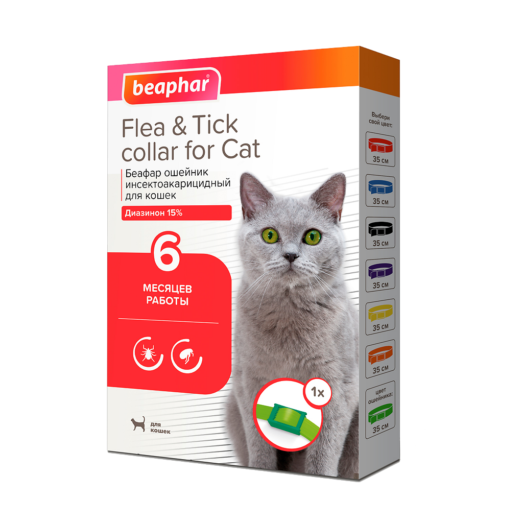 • 🏪 Купить Беафар (Beaphar) Flea & Tick Collar Ошейник для кошек зеленый от блох 6 мес. и клещей 6 мес. 35 см можно на сайте и в наших аптеках