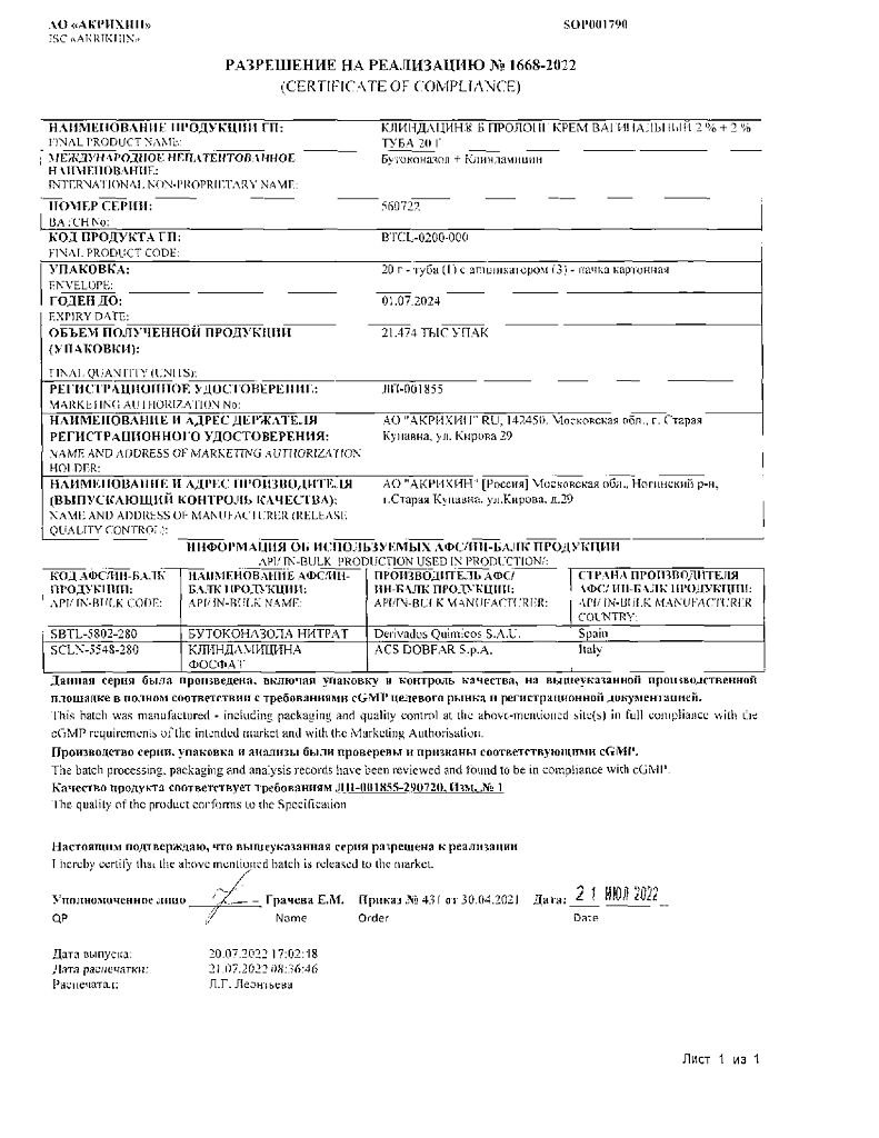 - Повышенная чувствительность к клиндамицину, линкомицину, бутоконазолу или любому компоненту препарата;
