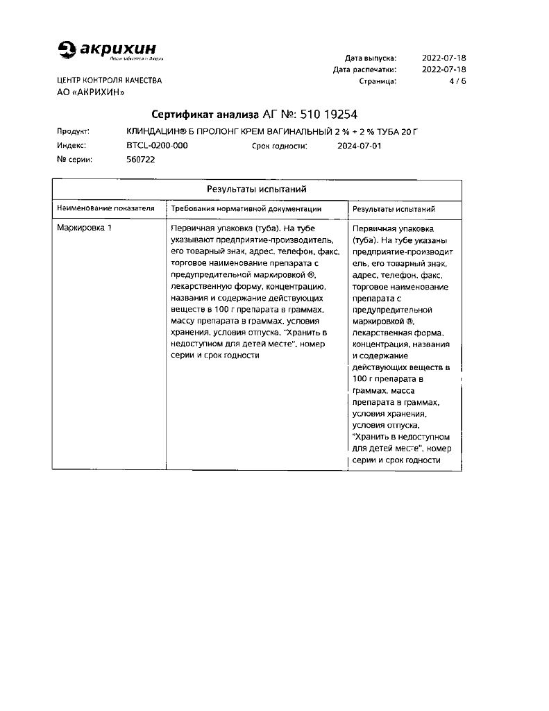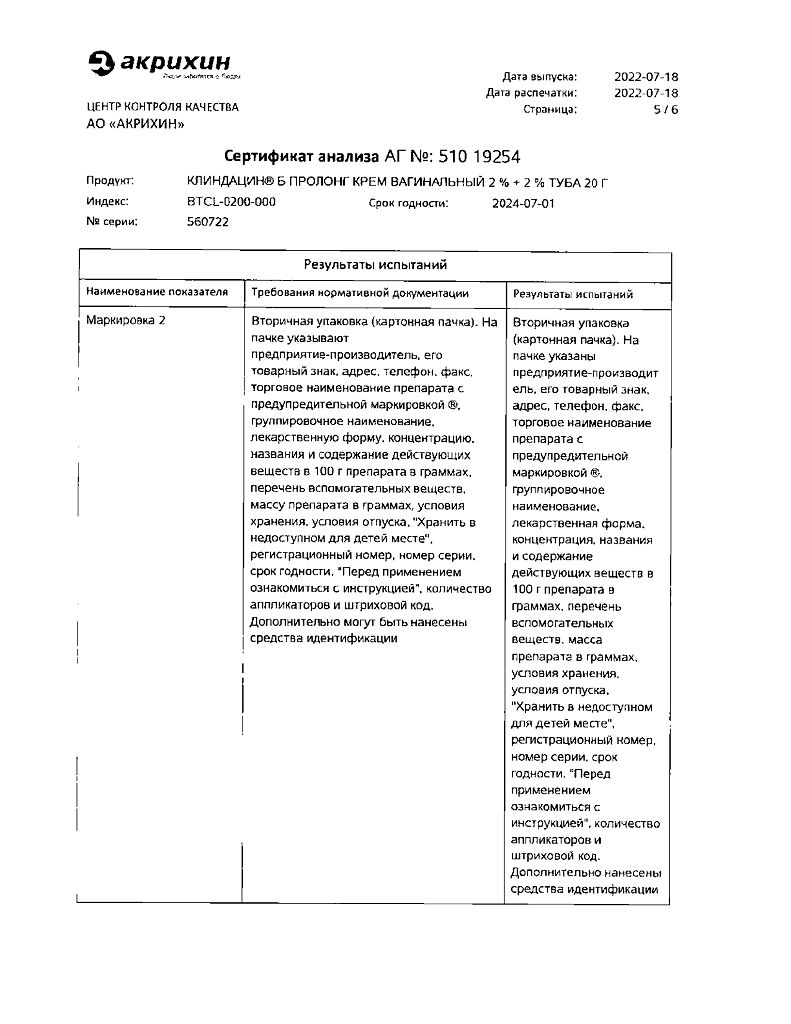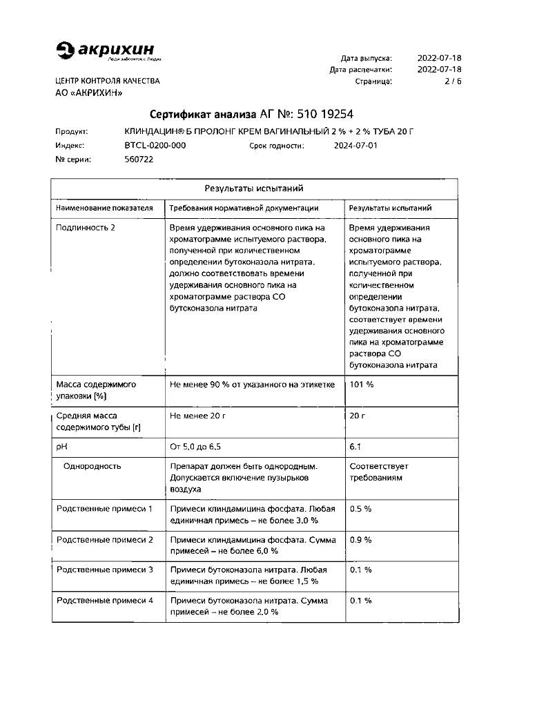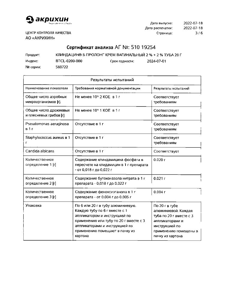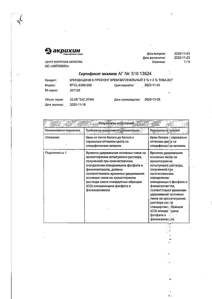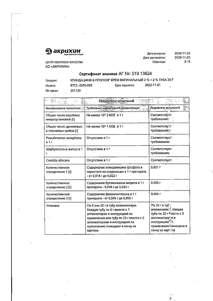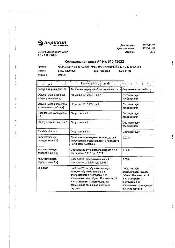Гидрофильная кремовая основа обеспечивает препарату гелеобразную консистенцию при температуре 35-40°С. При интравагинальном применении крем не плавится, благодаря чему активные вещества находятся на слизистой оболочке влагалища в течение 1-3 дней. Существует перекрестная резистентность между клиндамицином и линкомицином.