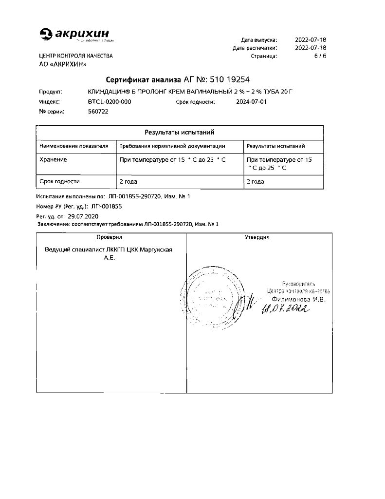составляет в первый день в среднем 13 нг/мл (6-34 нг/мл), а на 7-й день - 16 нг/мл (7-26 нг/мл). Системное воздействие клиндамицина при интравагинальном применении менее выражено, чем при введении внутрь или в/в.