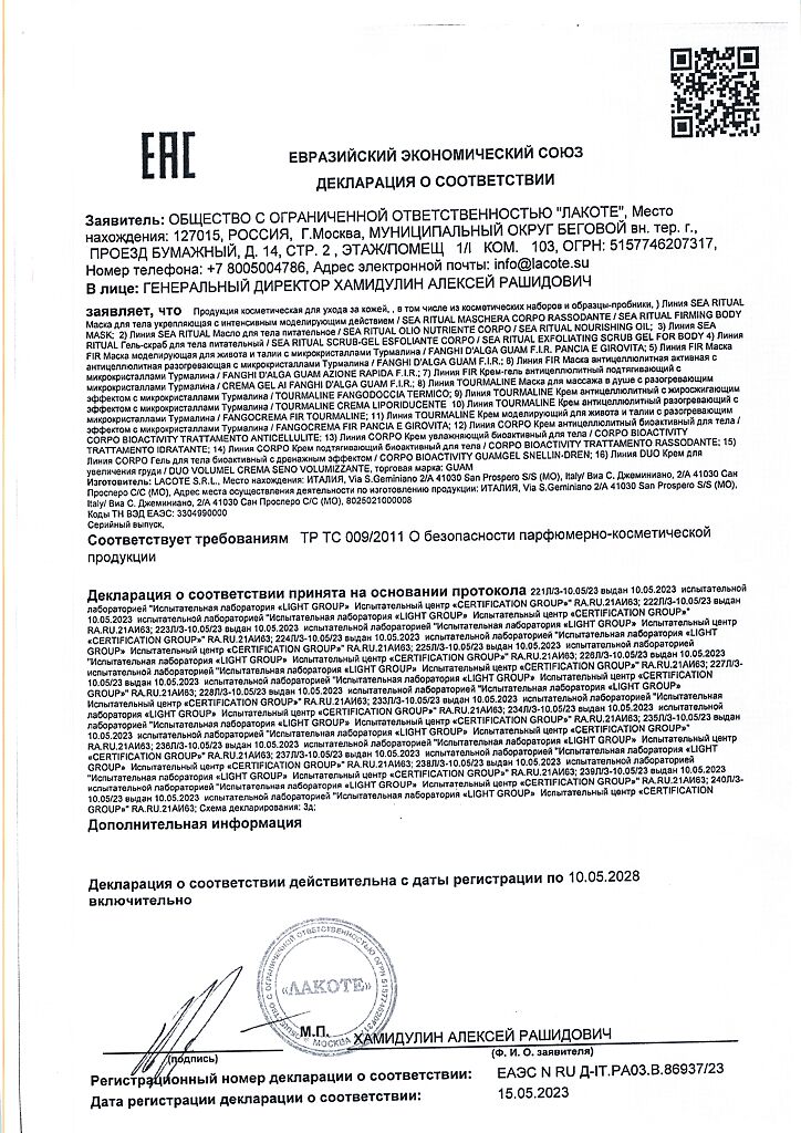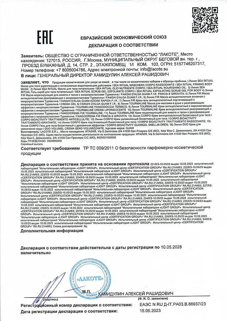 • 📒 Подробная инструкция по применению Guam Fir Маска антицеллюлитная активная 500г