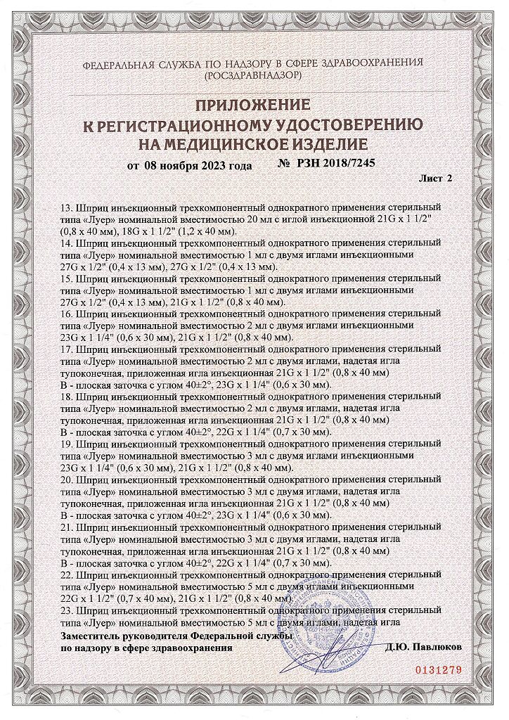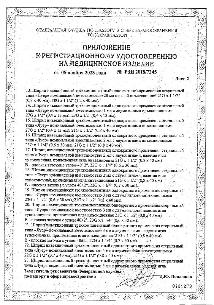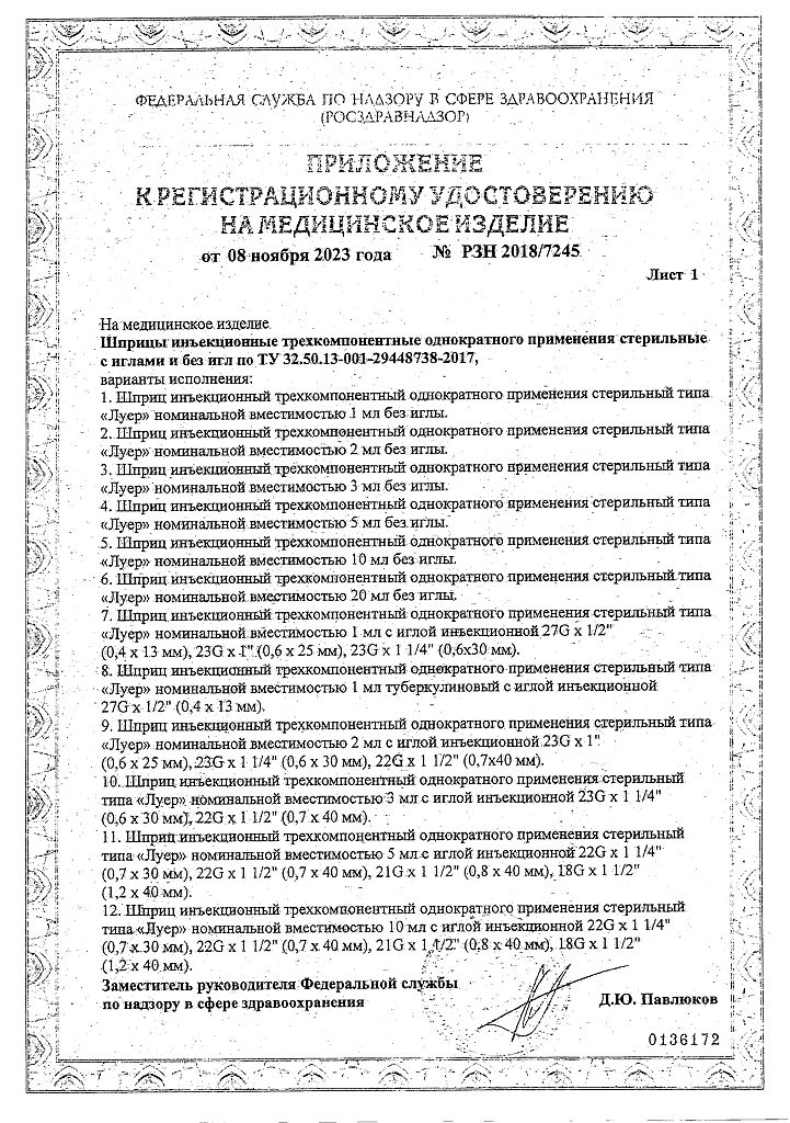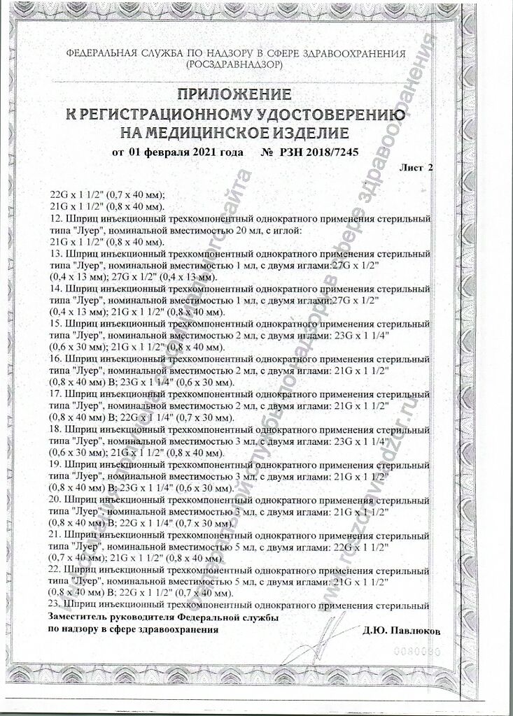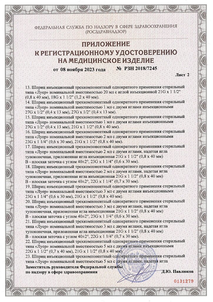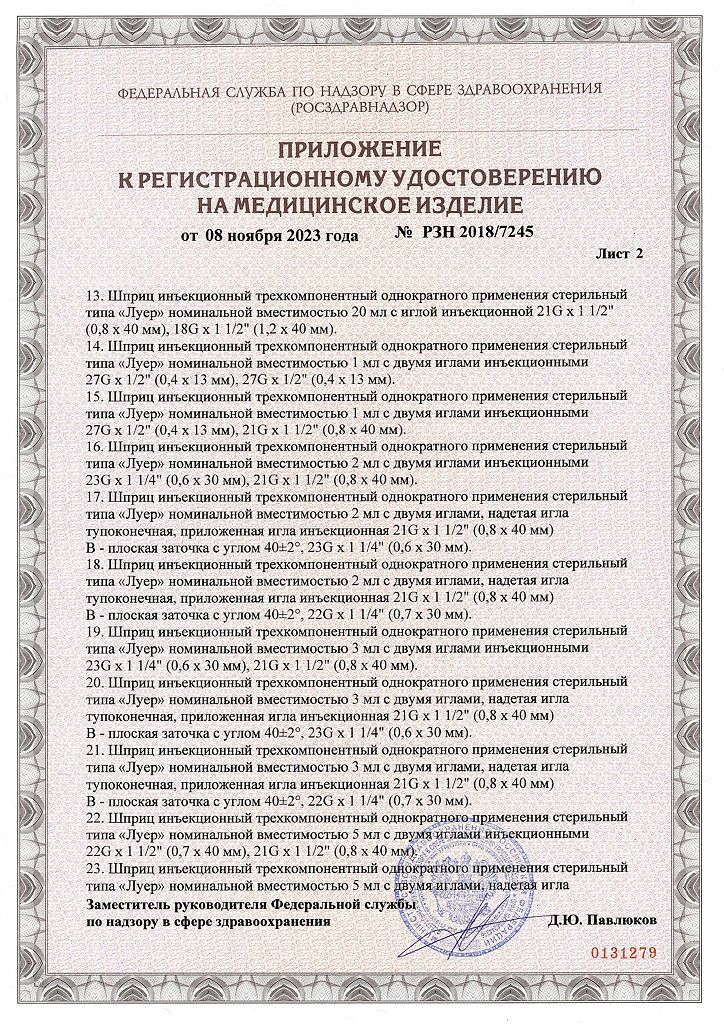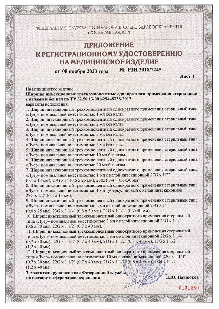 Шприц инъекционный 3-х компонентный однократного применения стерильный ТМ PASCAL'. Цилиндр полностью прозрачный для хорошей визуализации содержимого. Шкала хорошо читаемая. Расположена строго параллельно вертикальной оси цилиндра. Манжета не содержит латекс для предотвращения аллергических реакций. Игла инъекционная со стандартным срезом. Шприц упакован в индивидуальную блистерную упаковку с отогнутым краем, которая вскрывается с небольшим усилием, что предотвращает самопроизвольное вскрытие, и без образования бумажной бахромы.