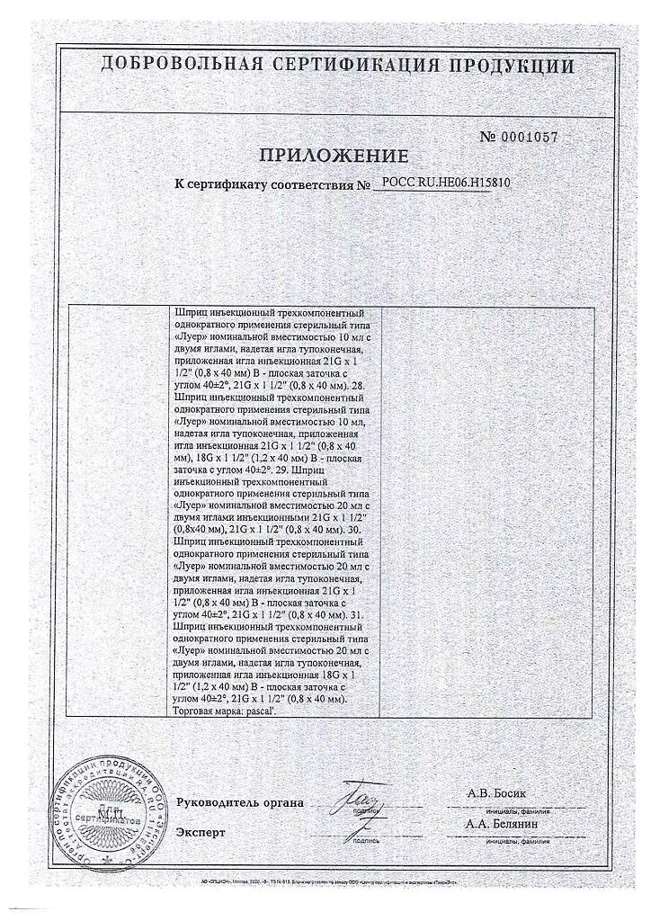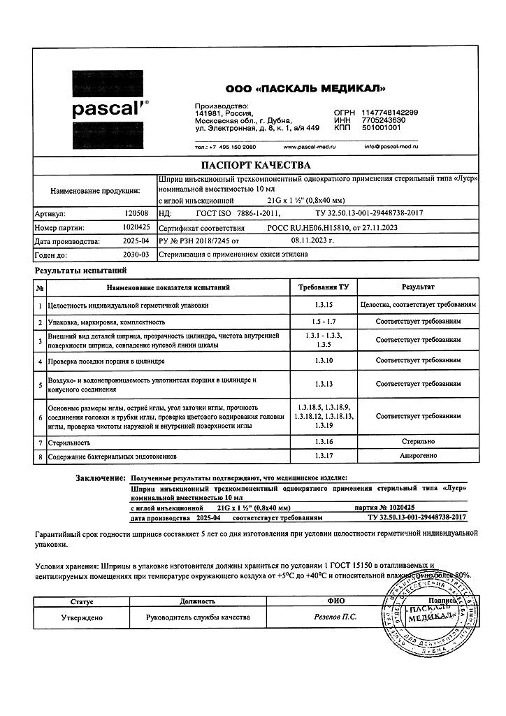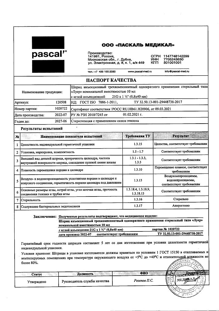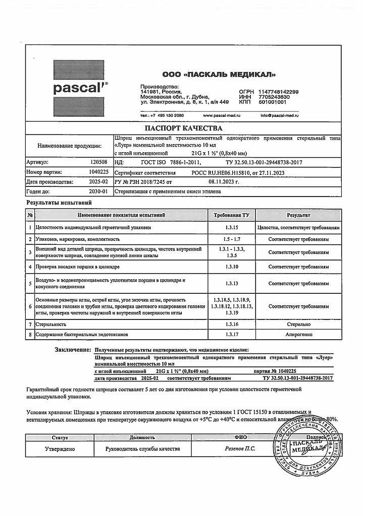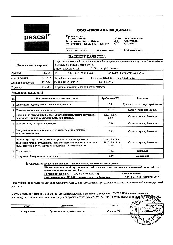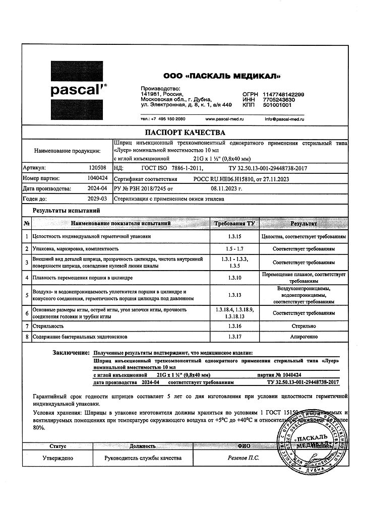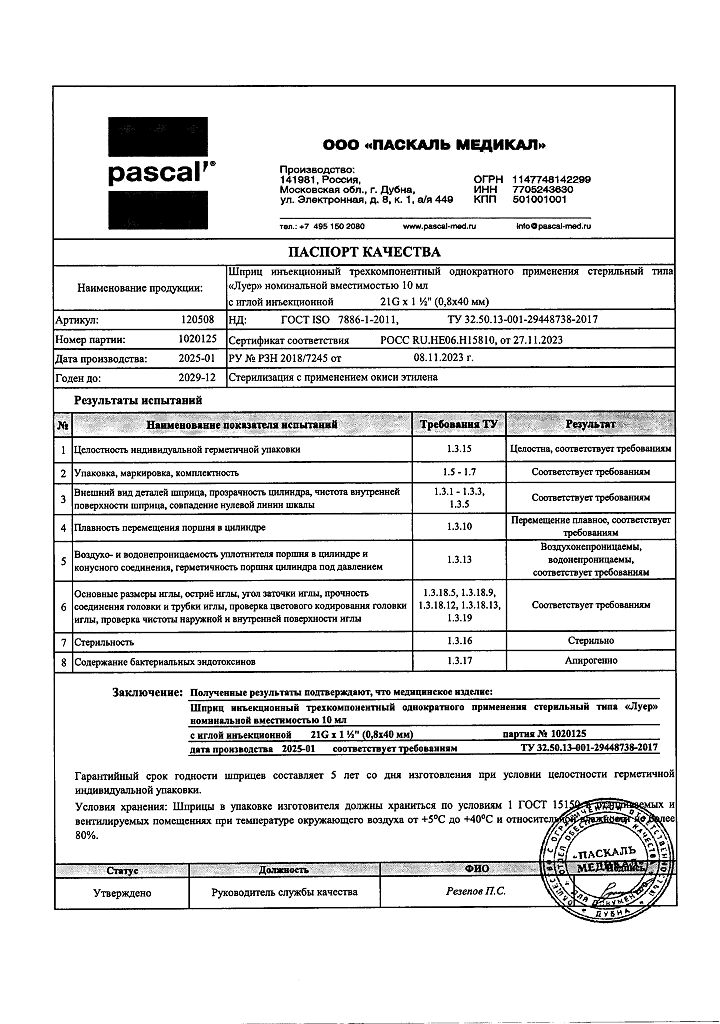 • 📒 Подробная инструкция по применению Шприц 3-х компонентный Pascal 10 мл с иглой 21G (0,8х40 мм) 10 шт