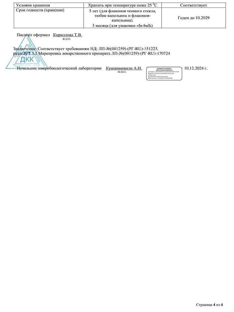5, 10 тюбик-капельниц по 5 мл или 1 тюбик-капельницу по 25 мл, или флакон с инструкцией по применению помещают в пачку из картона для потребительской тары.