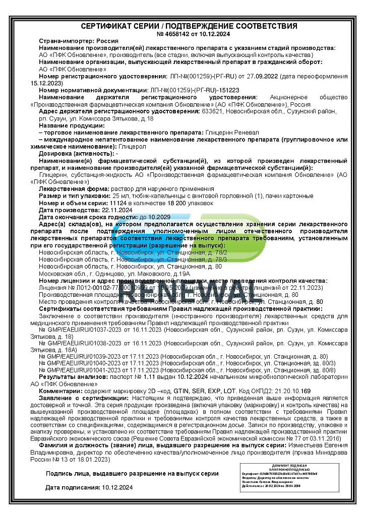 По 25 мл во флаконы темного стекла с винтовой горловиной, укупоренные пробками полиэтиленовыми и крышками навинчиваемыми из смеси полиэтилена высокого и низкого давления.