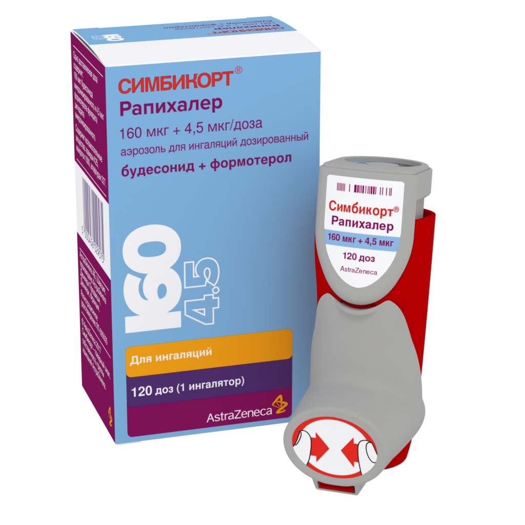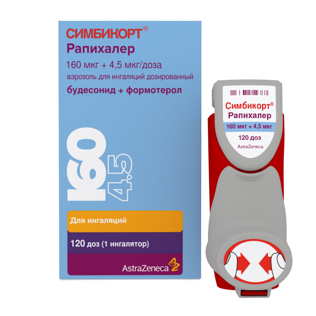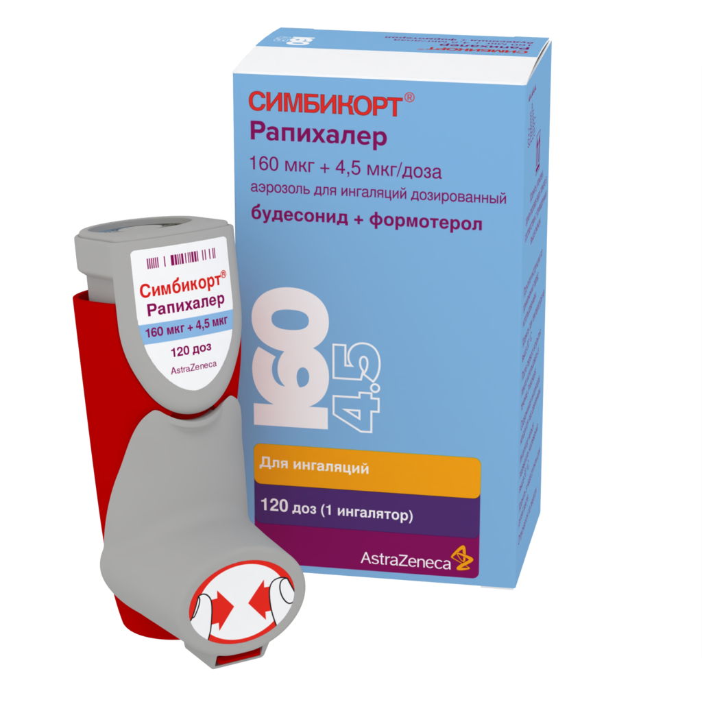 Симбикорт® Рапихалер 160 мкг + 4,5 мкг/доза: 2 ингаляции (2 высвобождения препарата) 1-2 раза в сутки. В случае усиления симптомов можно временно увеличить дозу (не более 1 недели) до 4 ингаляций (4 высвобождений препарата) 2 раза в сутки.
