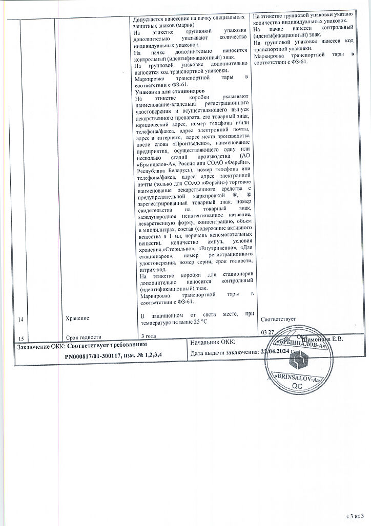 Длительность применения: продолжительность вливаний зависит от индивидуальных особенностей пациента. Имеется положительный опыт инфузии продолжительностью до 28 дней. После стабилизации клинической ситуации отмену препарата производят постепенно.