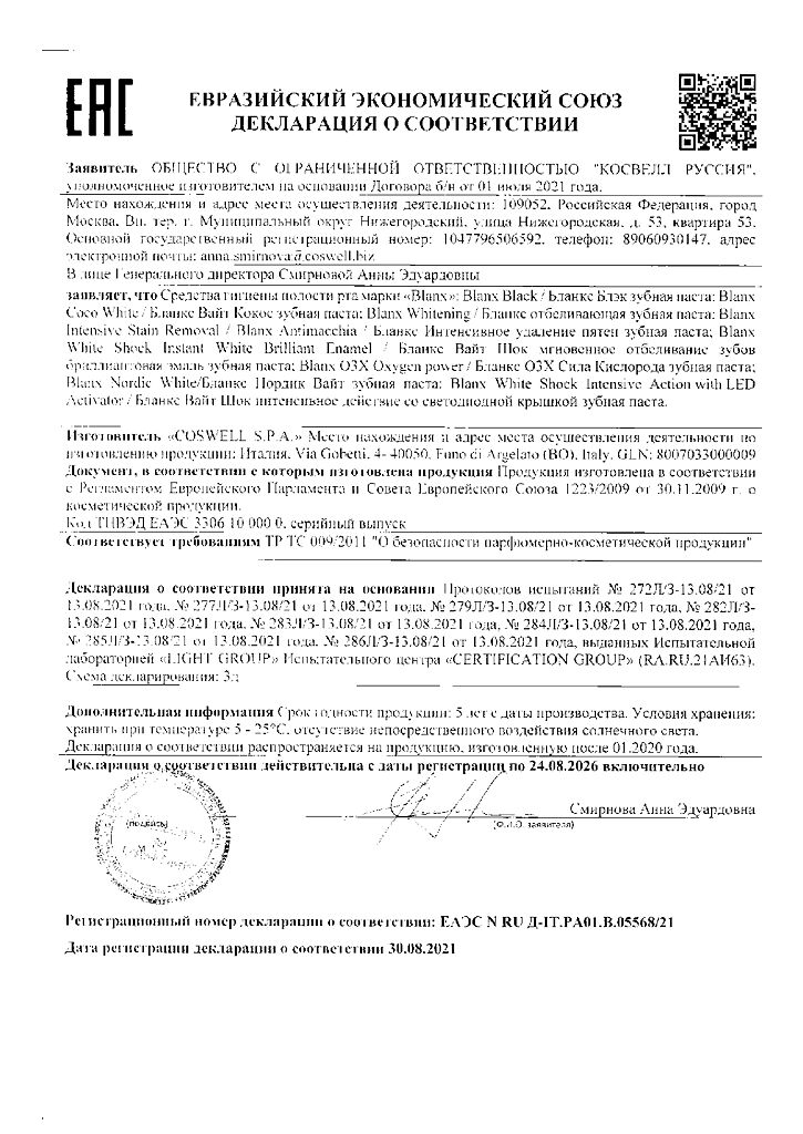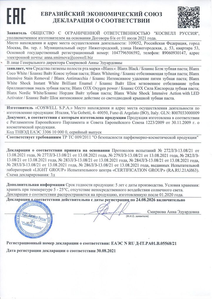 Документы Blanx Зубная паста Coco White отбеливающая с экстрактом кокоса 75 мл 1 шт