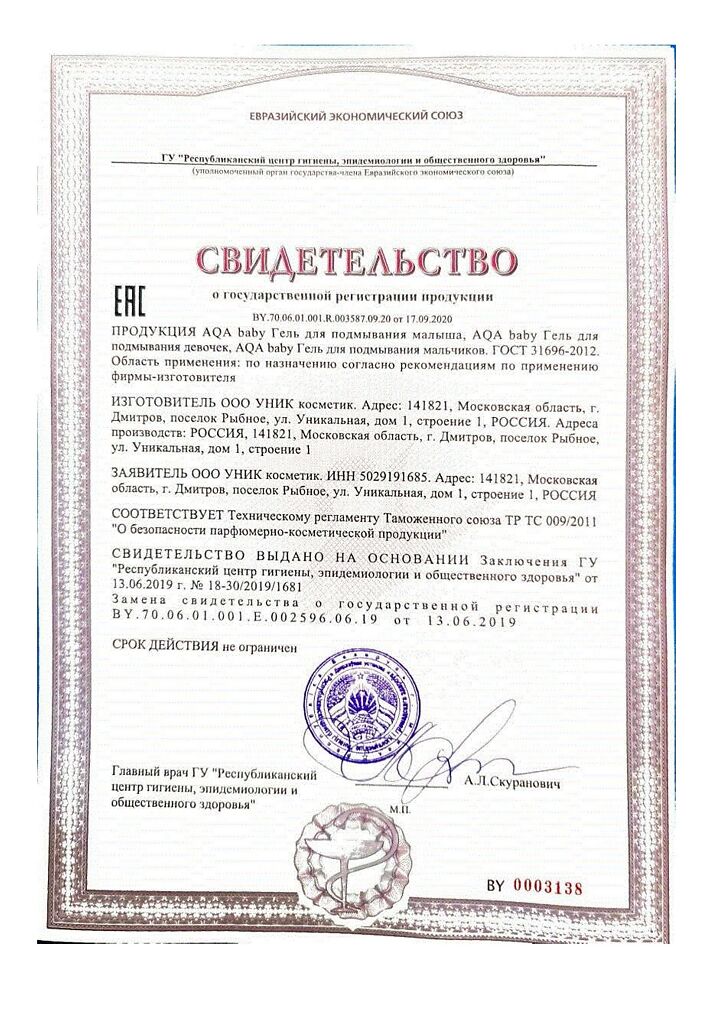 Документы AQA baby Гель для подмывания мальчиков 400 мл 1 шт