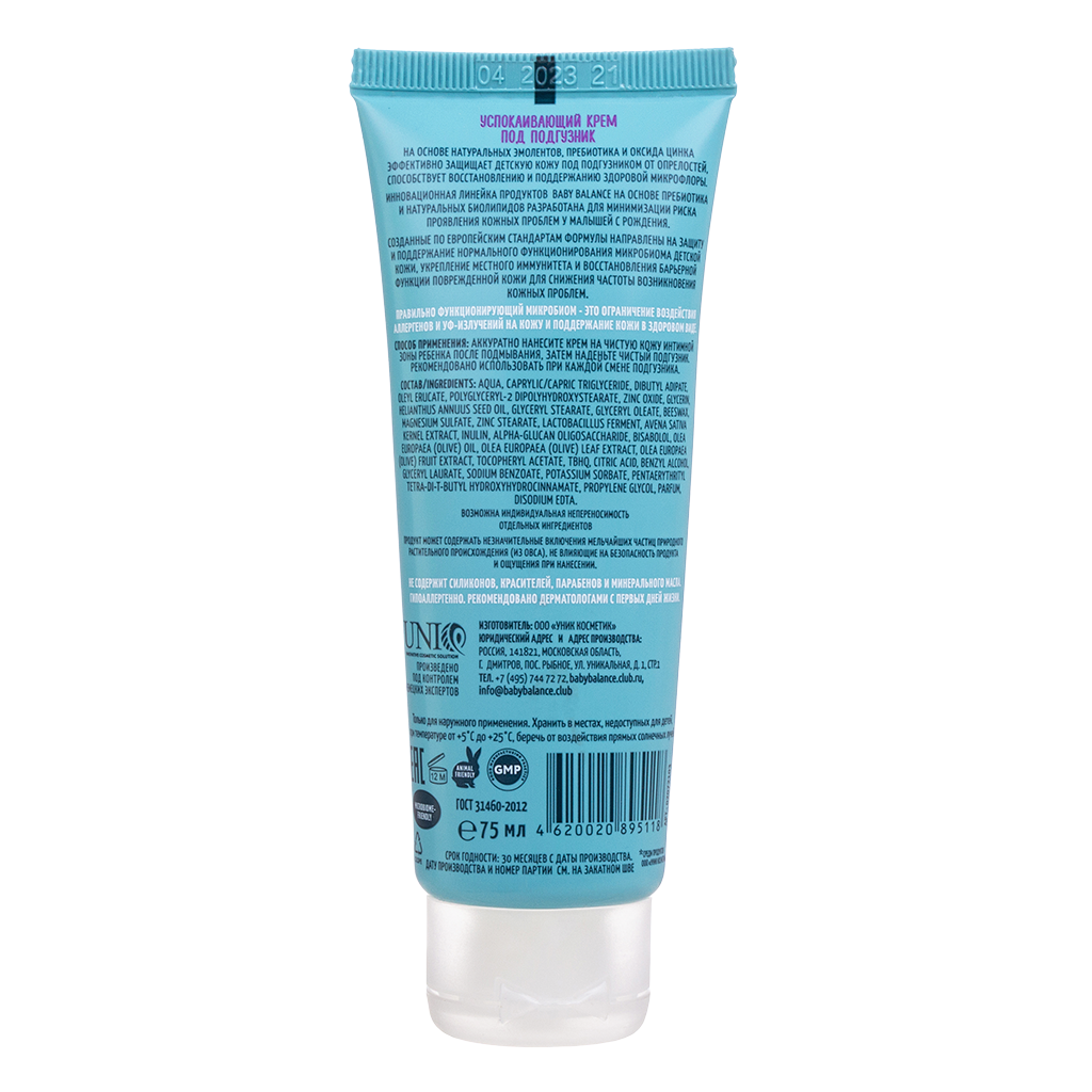 Успокаивающий крем под подгузник эффективно защищает детскую кожу от опрелостей, способствует восстановлению и поддержанию здоровой микрофлоры.