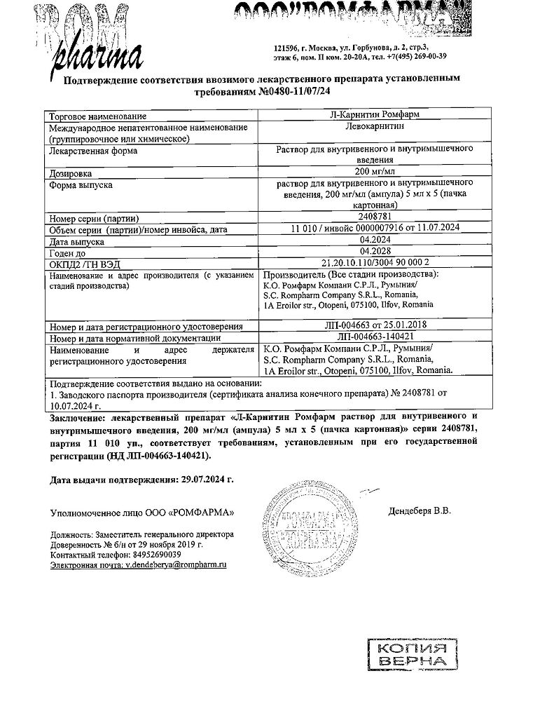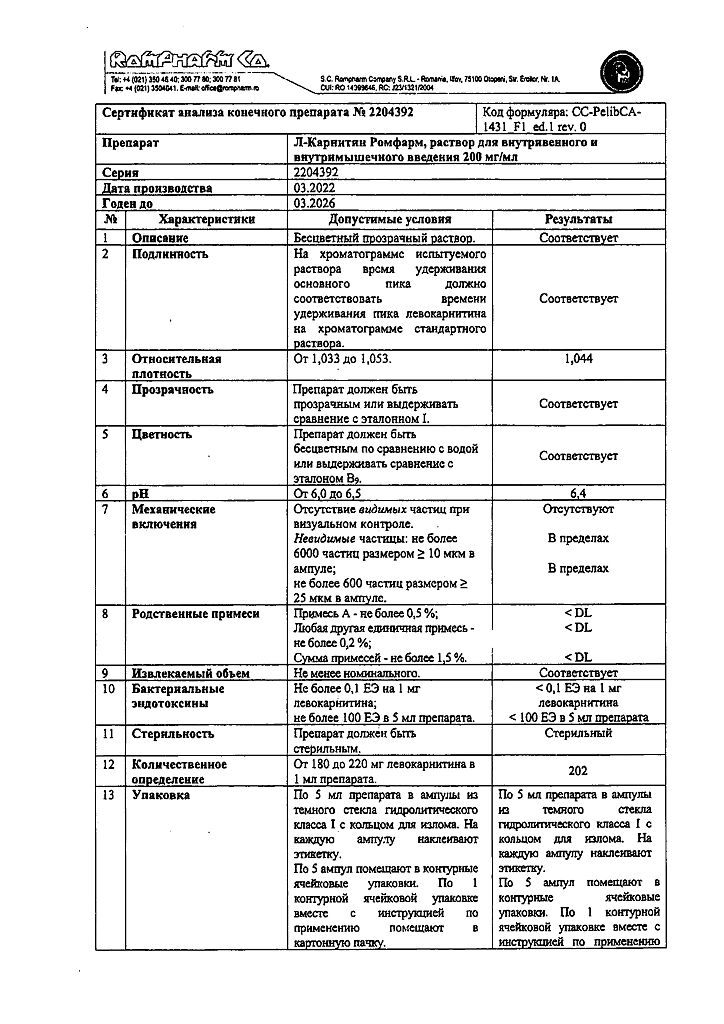 Л-Карнитин Ромфарм показан при первичном и вторичном дефиците карнитина, в том числе у больных хронической почечной недостаточностью, находящихся на гемодиализе; при кардиомиопатии, ишемической болезни сердца (стенокардия, острый инфаркт миокарда, постинфарктные состояния), гипоперфузии вследствие кардиогенного шока и других нарушениях метаболизма миокарда.