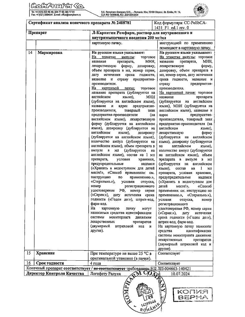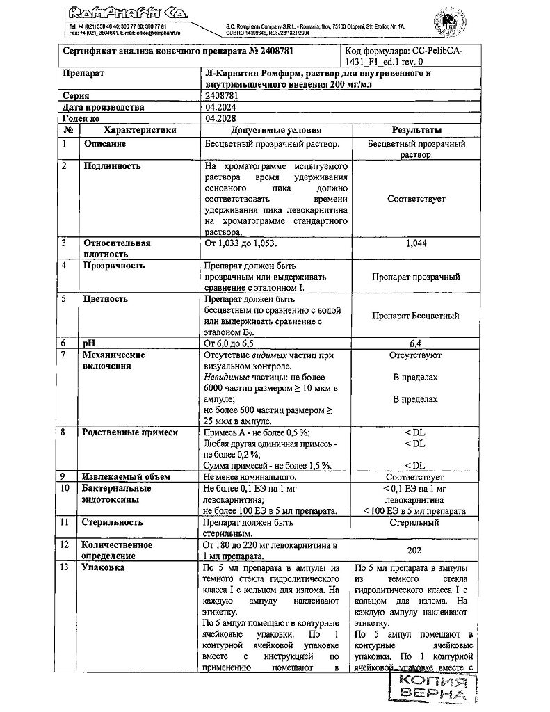 Производитель: К.О.Ромфарм Компани С.Р.Л., Румыния