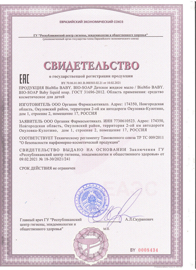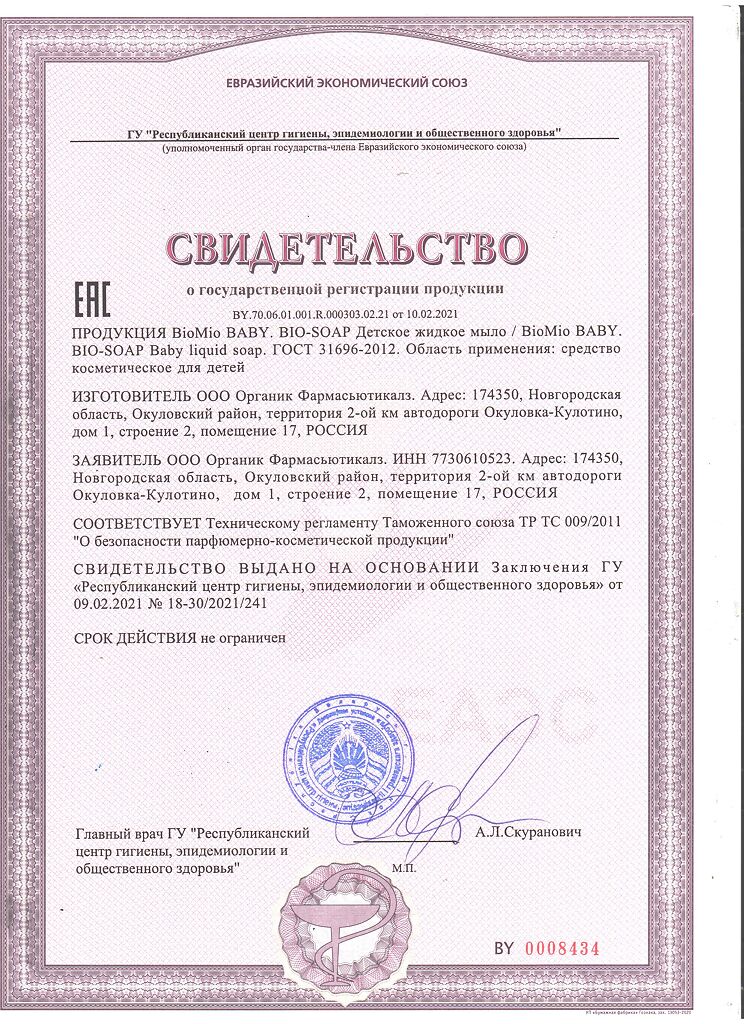 Документы БиоМио (BioMio) Baby Bio-Soap Детское жидкое мыло 300 мл 1 шт
