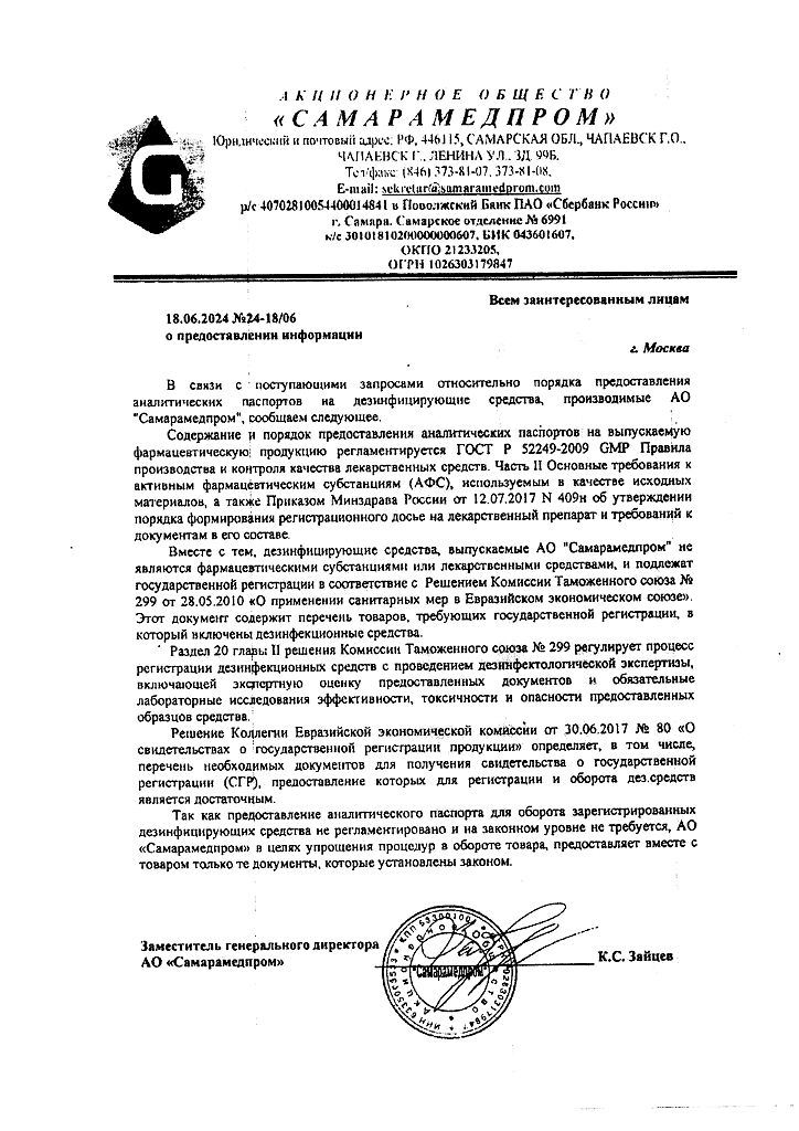 При проведении дезинфекции оборудования, аппаратов и/или устройств в фармацевтической, биотехнологической, парфюмерно-косметической и пищевой промышленностях - поверхности протирают ветошью, смоченной дезинфицирующим раствором, предметы погружают в раствор средства на время дезинфекционной выдержки. Емкости и имеющиеся в оборудовании форсунки, дозаторы, краны и др. заполняют или проливают раствором, избегая образования воздушных пробок.