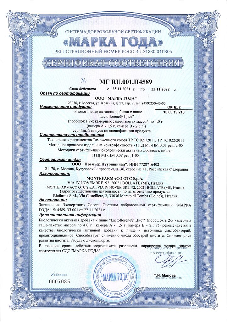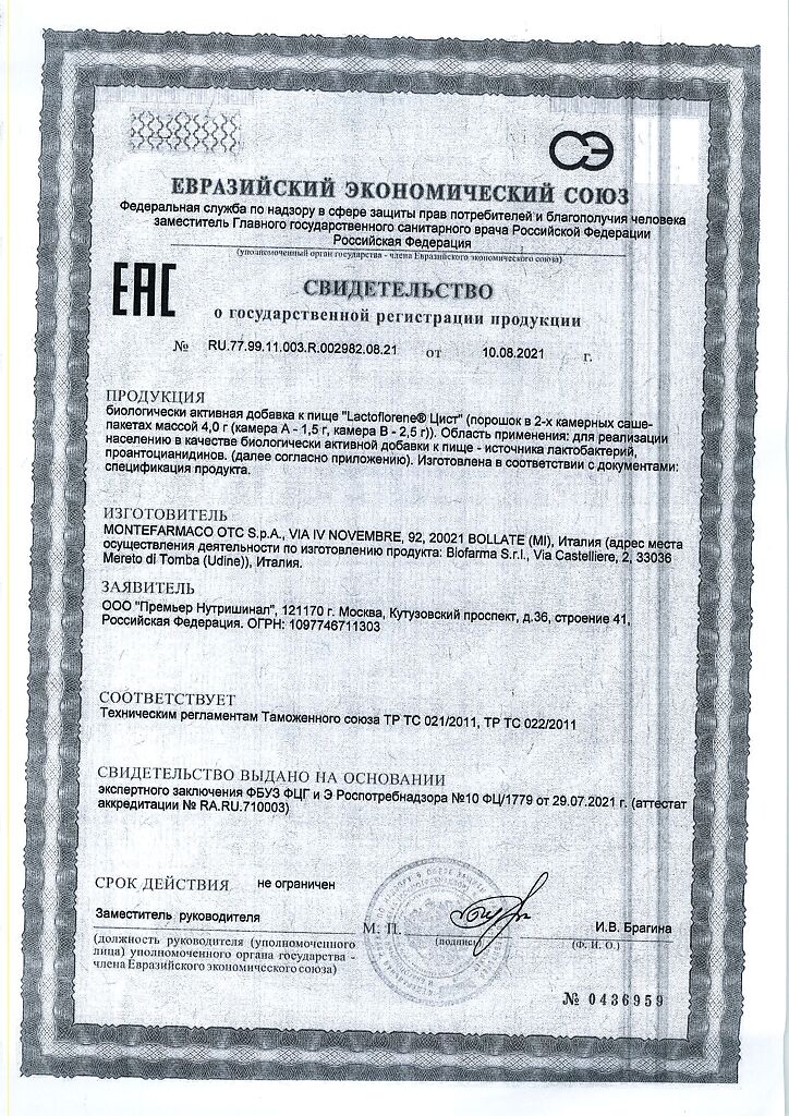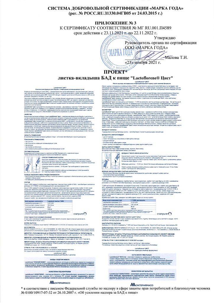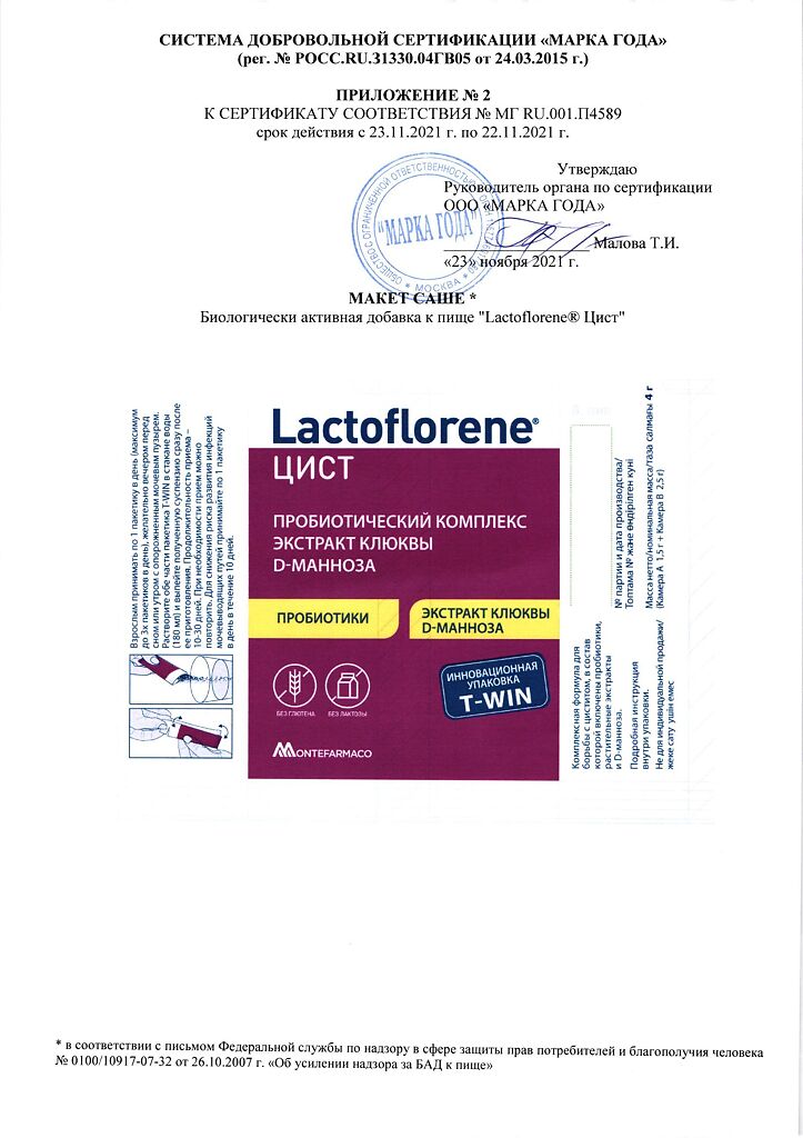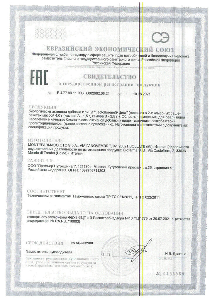 Документы Lactoflorene Цист порошок в 2-х камерных саше-пакетах массой 4,0 г (камера А - 1,5 г, камера В - 2,5 г) 20 шт