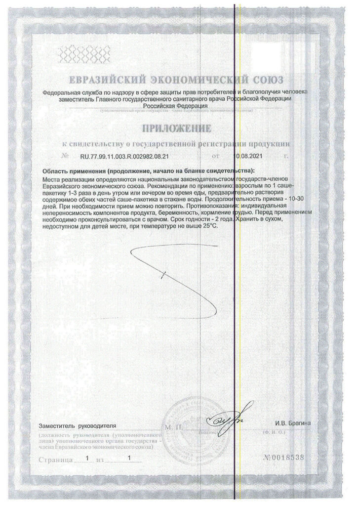 Камера В (клюква + D-манноза): D-манноза, мальтодекстрин подсластитель сорбит (Е 420), сухой концентрат черничного сока, регулятор кислотности лимонная кислота (Е 330), сухой экстракт ягод клюквы, ароматизатор малина (мальтодекстрин, носители: Е 414, Е 1518, Е 1520; регулятор кислотности Е 270, натуральные ароматические субстанции, ароматические вещества), ароматизатор лесные ягоды (мальтодекстрин, носитель Е414, ароматические субстанции, натуральные ароматические субстанции и вещества), антислеживающий агент диоксид кремния Е 551, порошок красной свеклы, подсластитель сукралоза Е955. Содержит сорбит, при чрезмерном употреблении может оказывать слабительное действие.