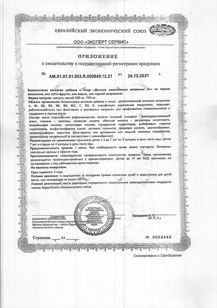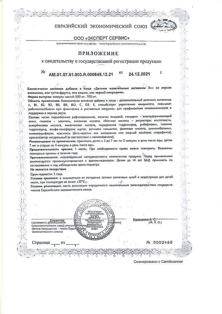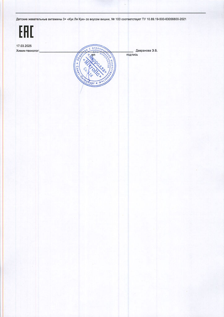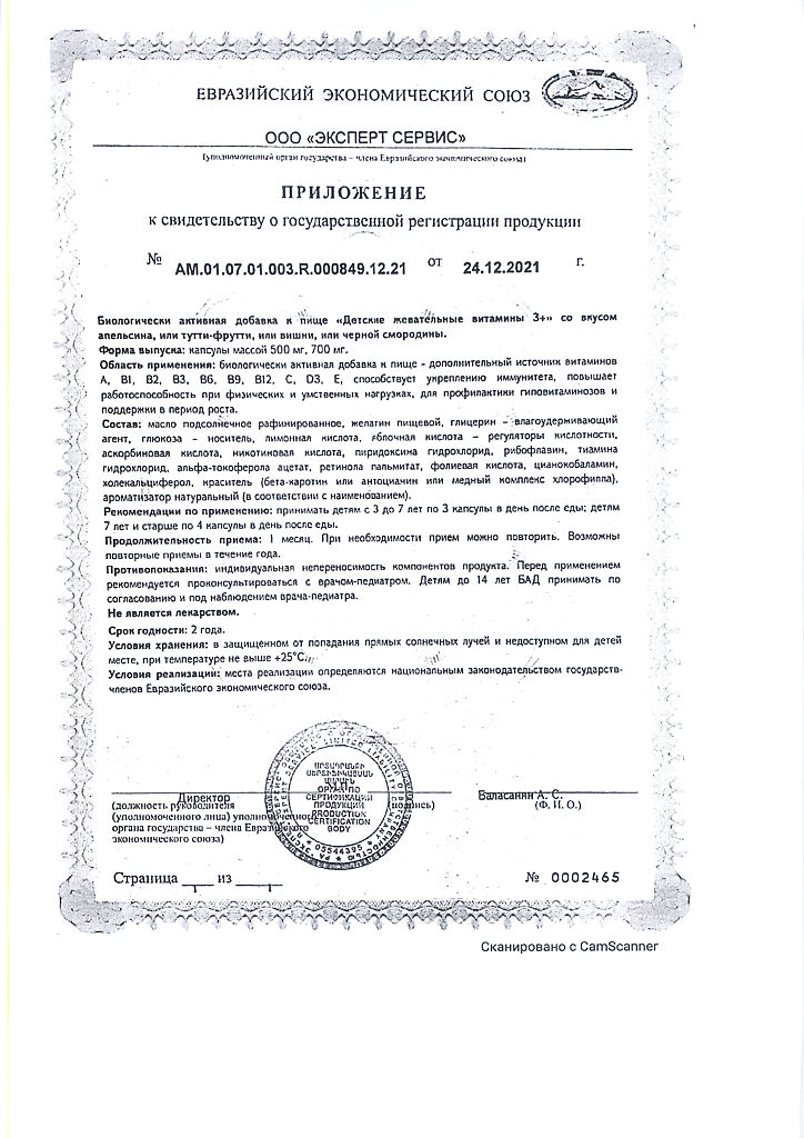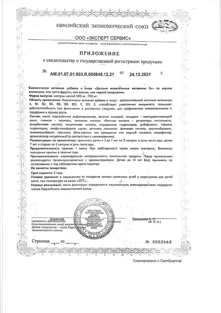 Документы Кук Ля Кук Детские жевательные витамины 3+ капсулы массой 500 мг со вкусом вишни 100 шт
