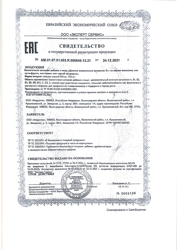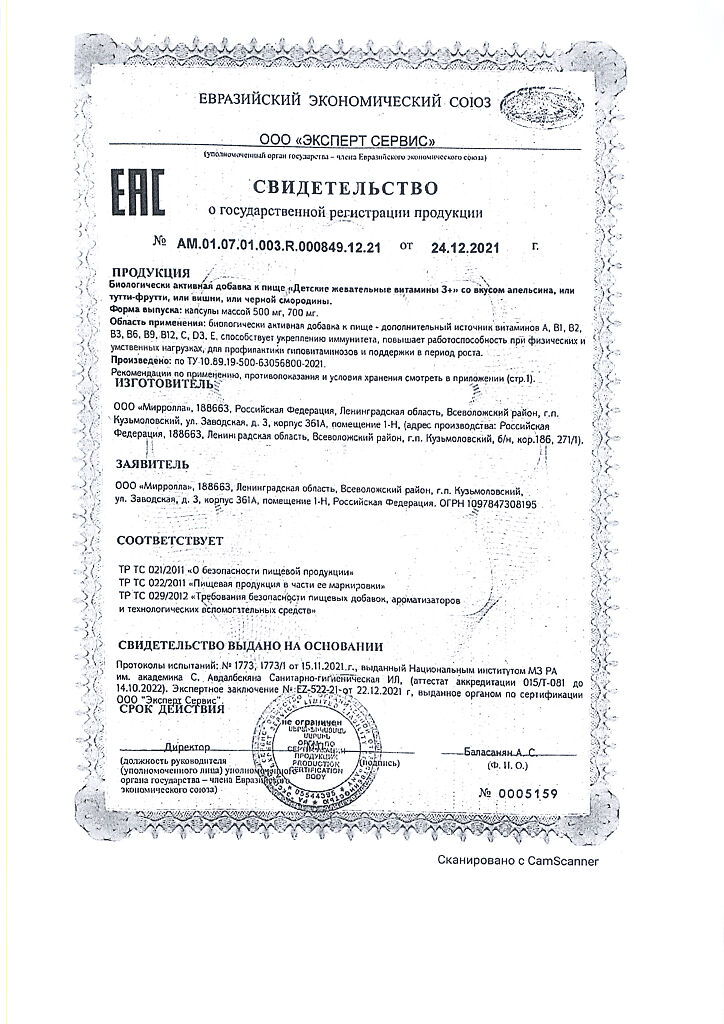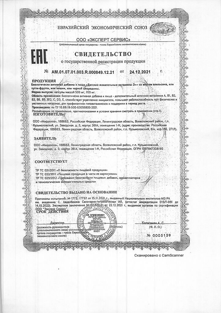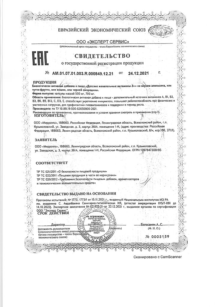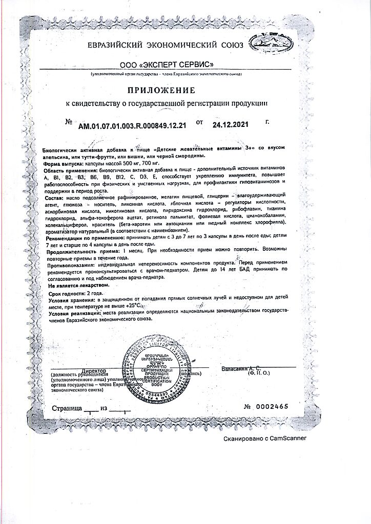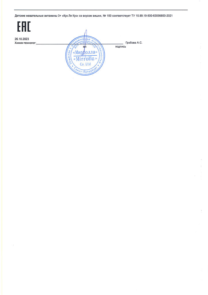 Документы Кук Ля Кук Детские жевательные витамины 3+ капсулы массой 500 мг со вкусом вишни 100 шт