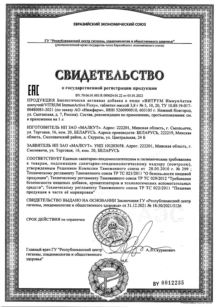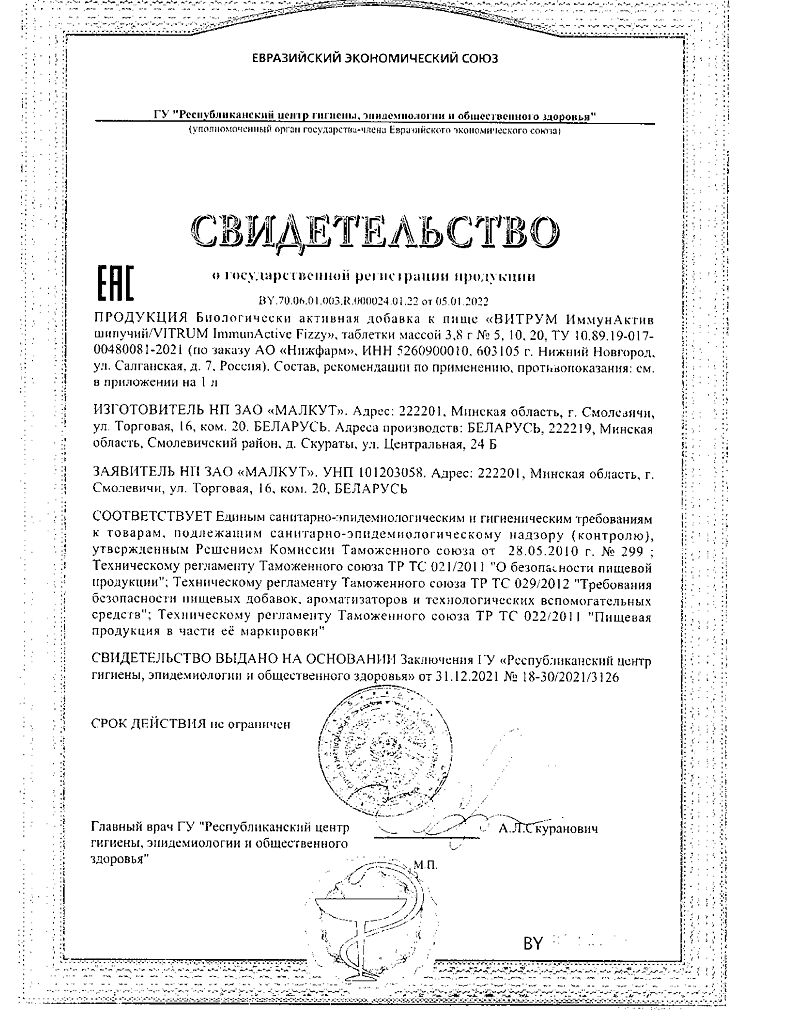 Документы Витрум Иммунактив/Vitrum Immunactive Fizzy таблетки шипучие массой 3,8 г 20 шт