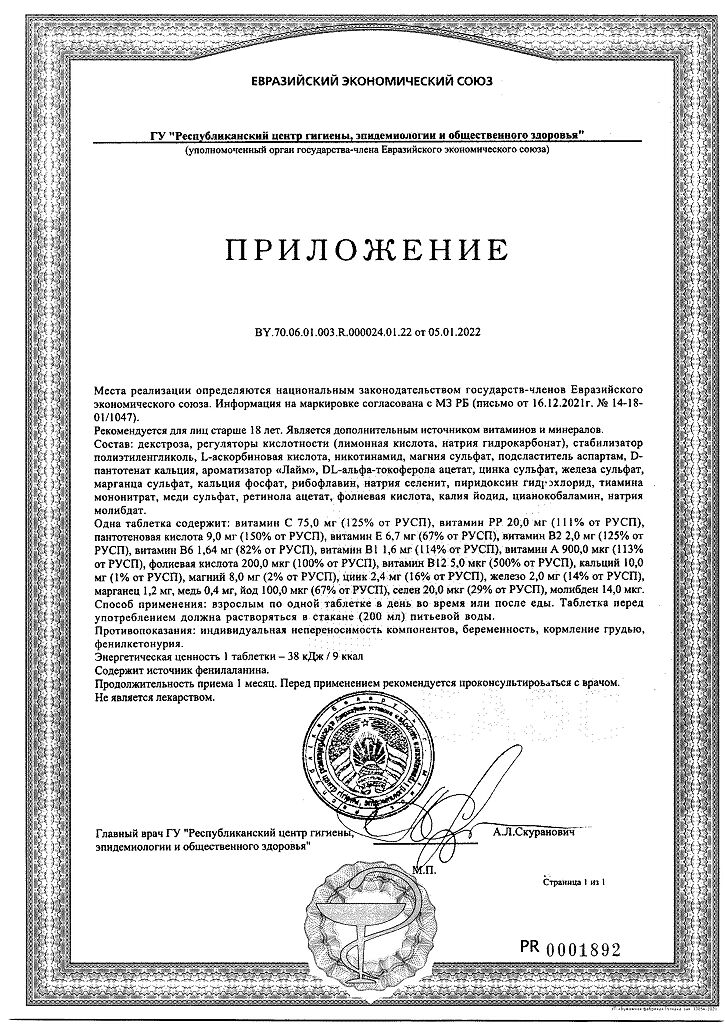 Взрослым по одной таблетке в день во время или после еды. Таблетка перед употреблением должна растворяться в стакане (200 мл) питьевой воды.