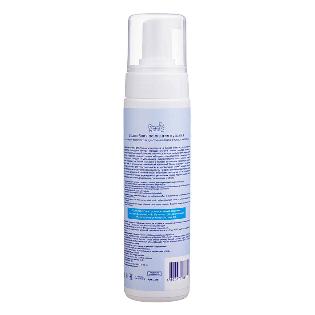 Волшебная пенка для купания «С головы до пяточек» от «Наша мама», заменяющая и пену, и шампунь, предназначена для купания малышей с чувствительной и проблемной кожей.