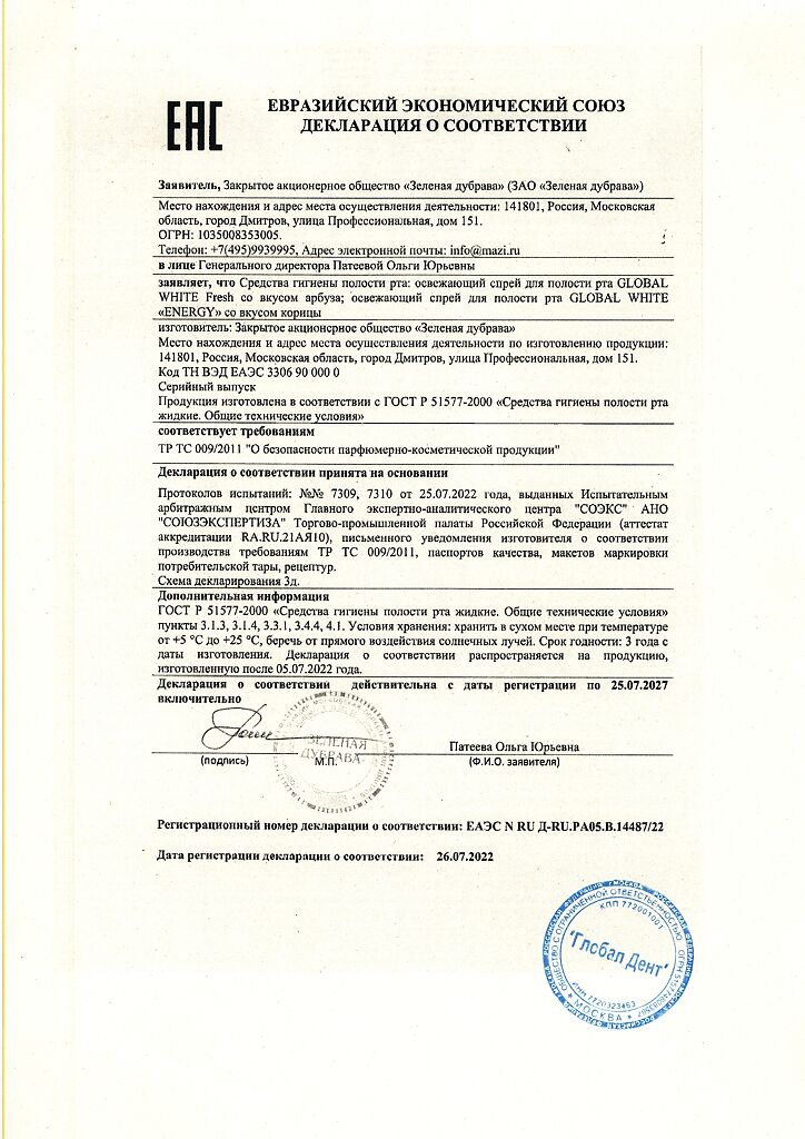 • 🏪 Купить Global White Спрей освежающий Fresh для полости рта со вкусом арбуза 15 мл 1 шт можно на сайте и в наших аптеках