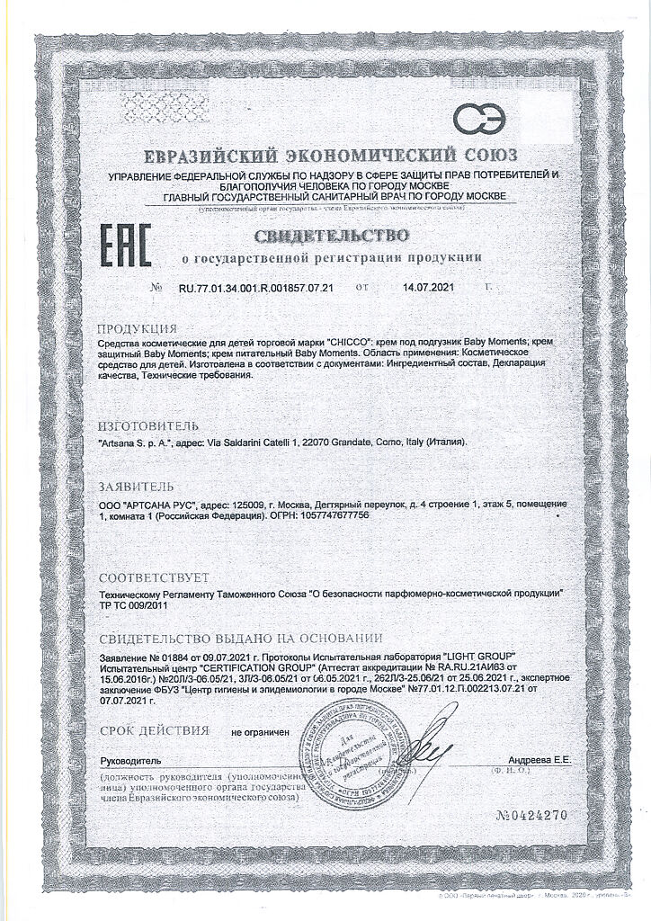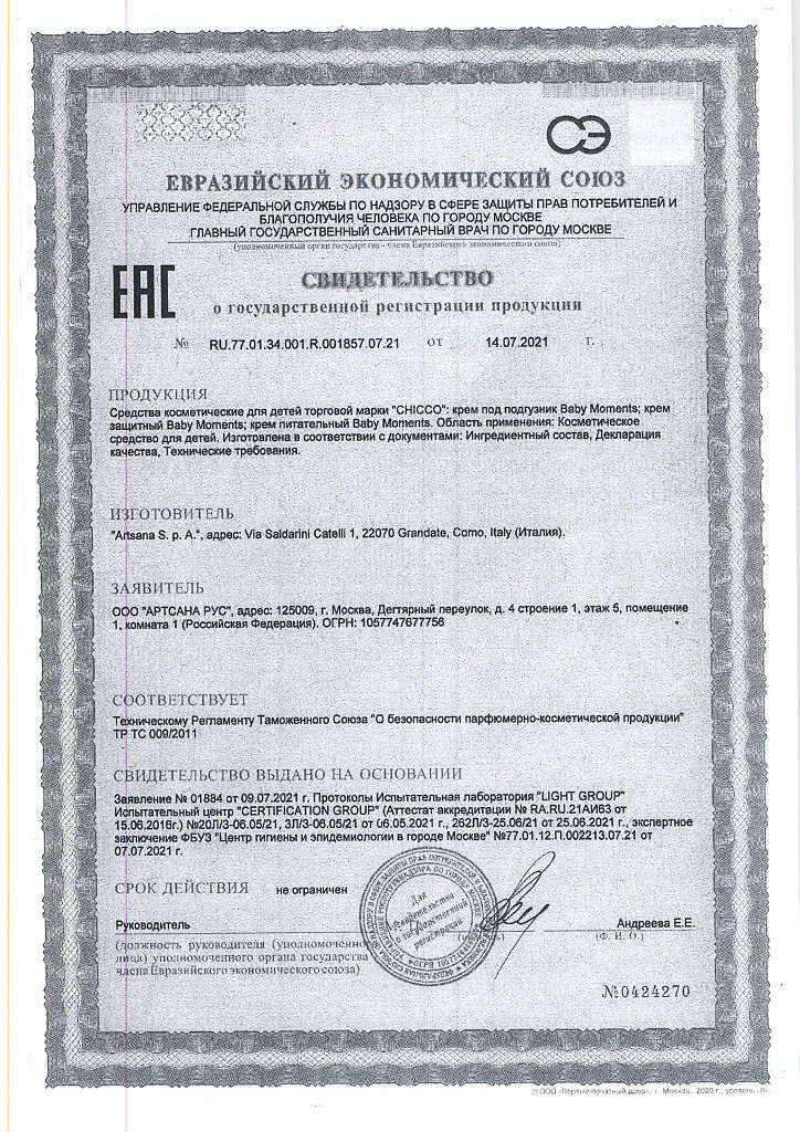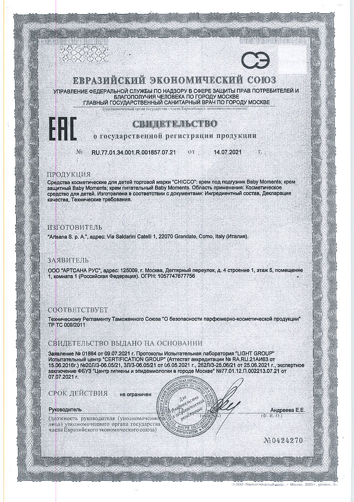 Документы Chicco Крем питательный Baby Moments 0м+ 100 мл