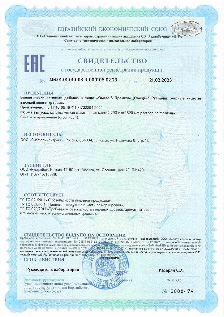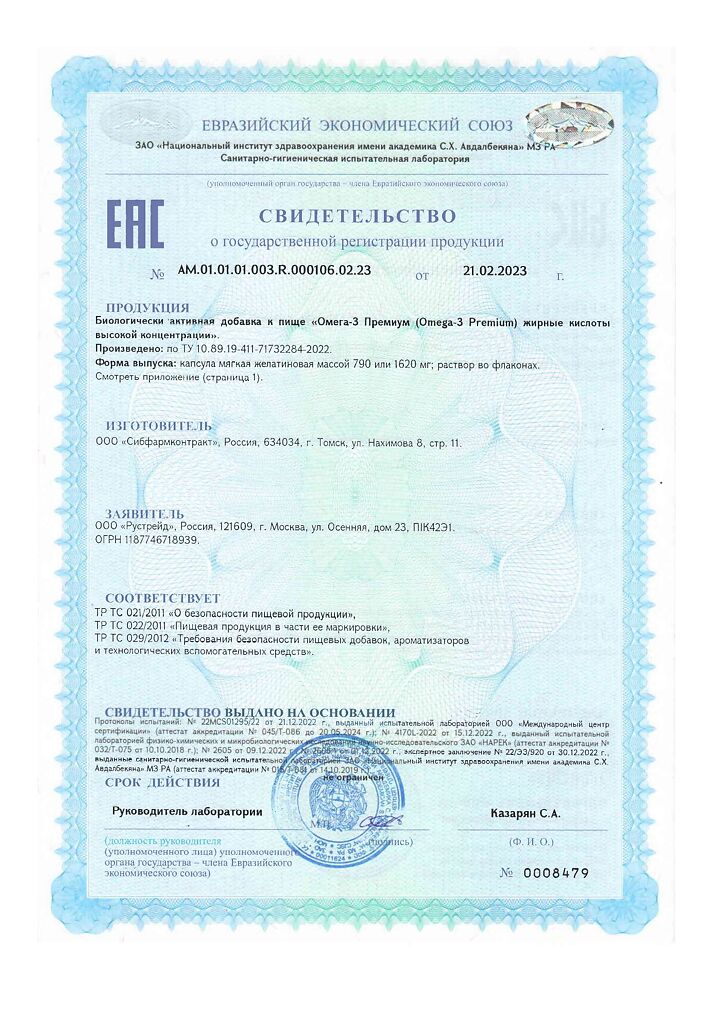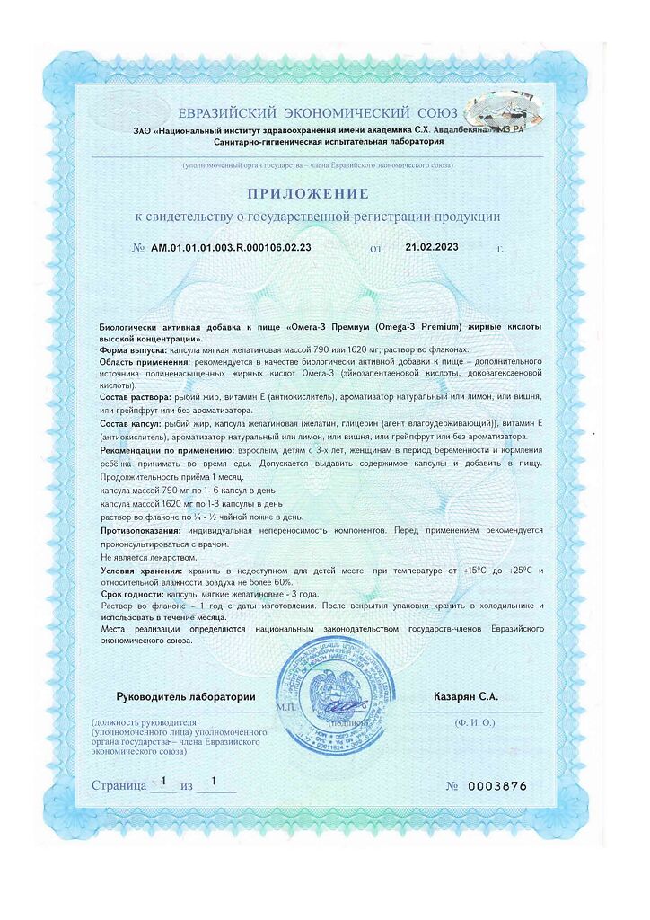 Документы Омега-3/Omega-3 Extra Premium UltraBalance жирные кислоты высокой концентрации капсулы массой 1620 мг 90 шт